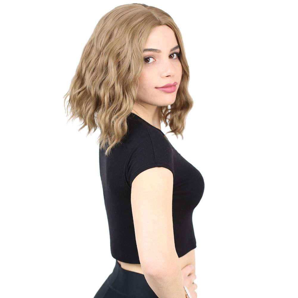 Fiber Sentetik Kısa Dalgalı Perçemsiz Peruk - Bebek Kumralı