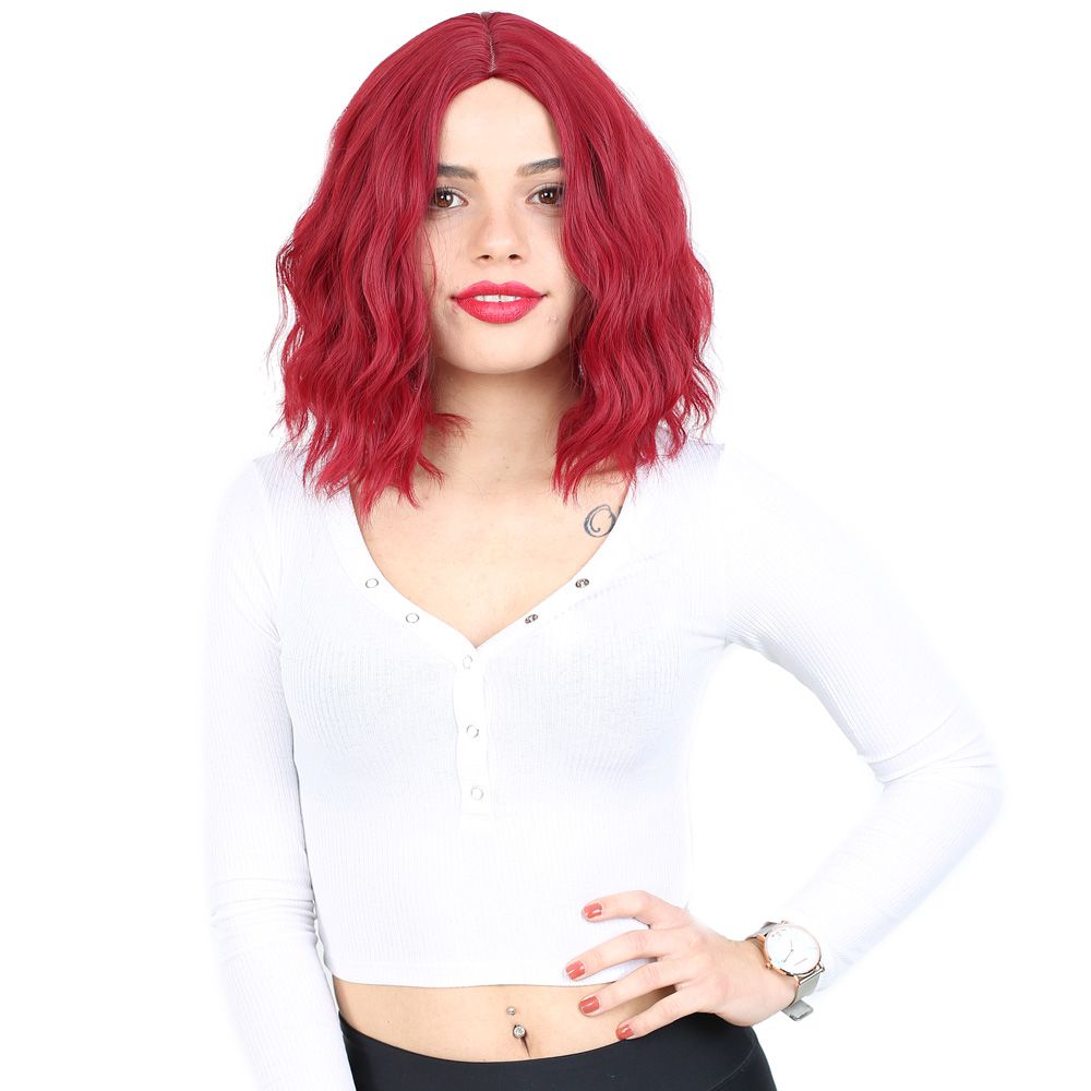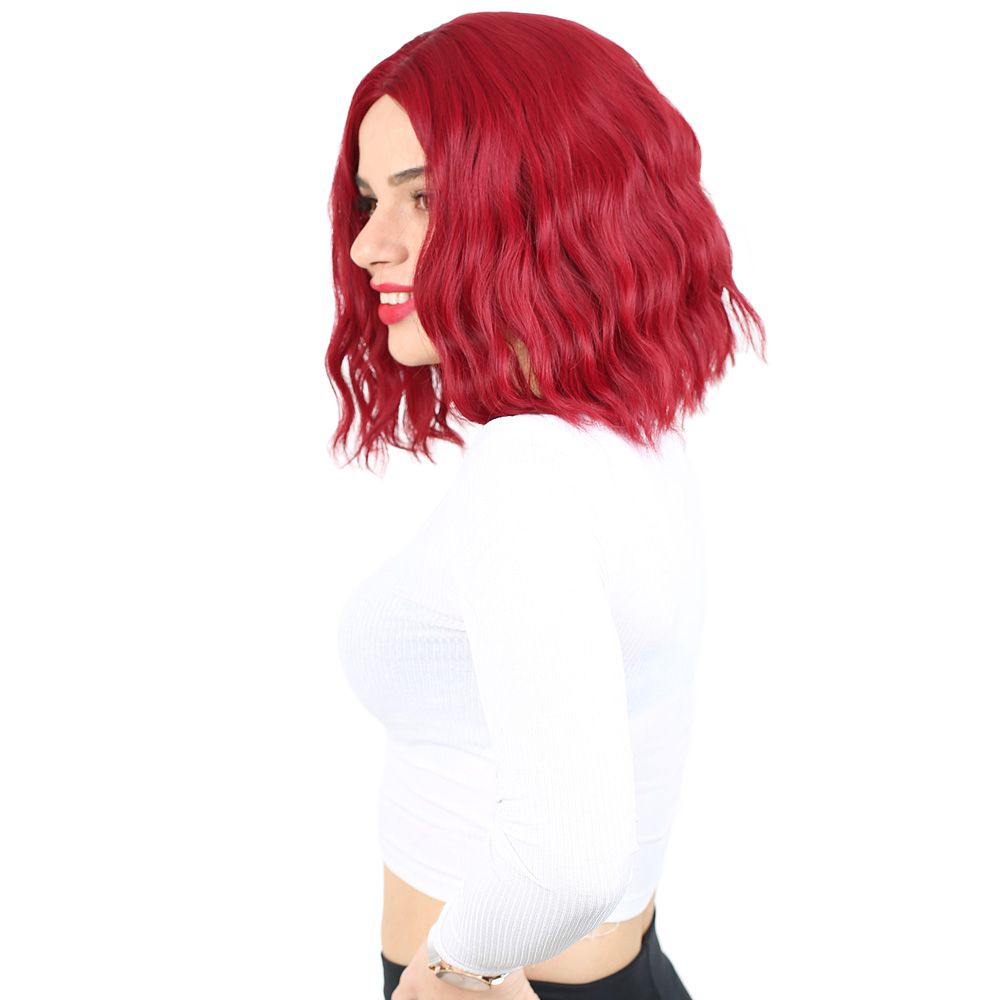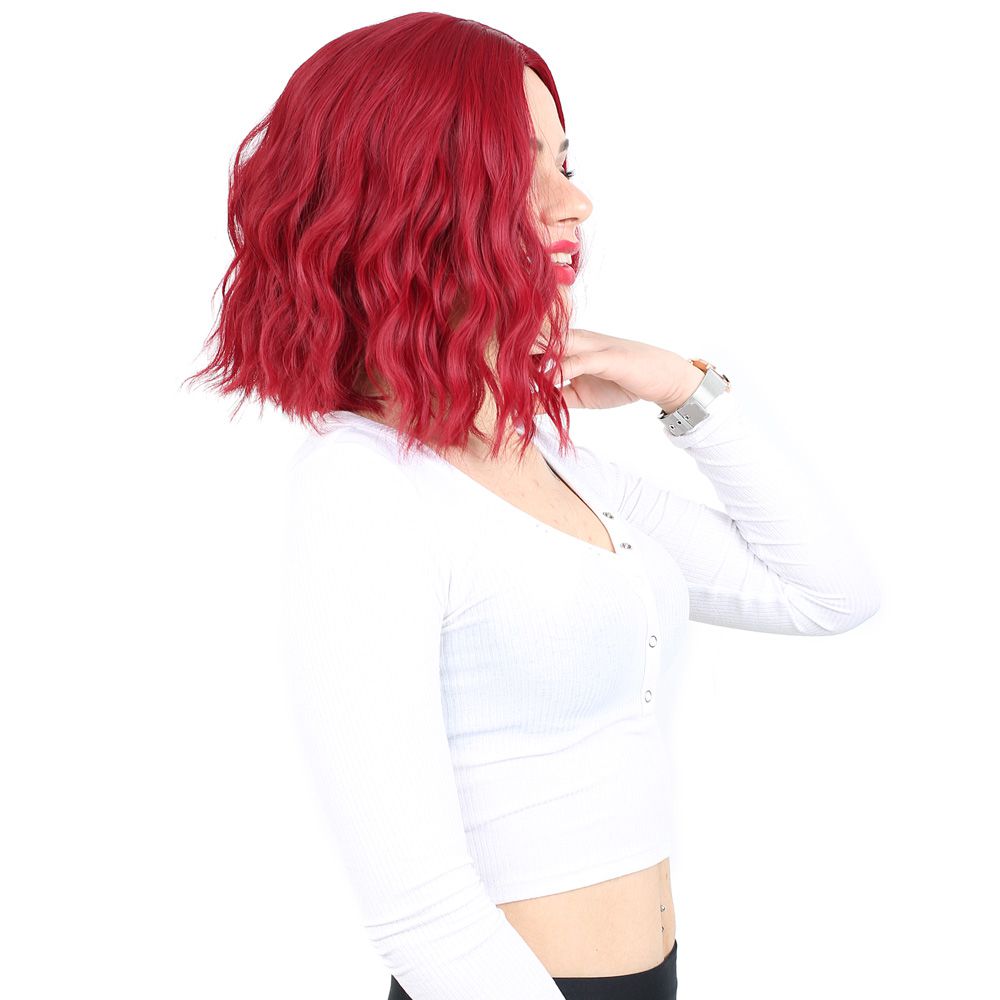 Fiber Sentetik Kısa Dalgalı Perçemsiz Peruk - Kızıl