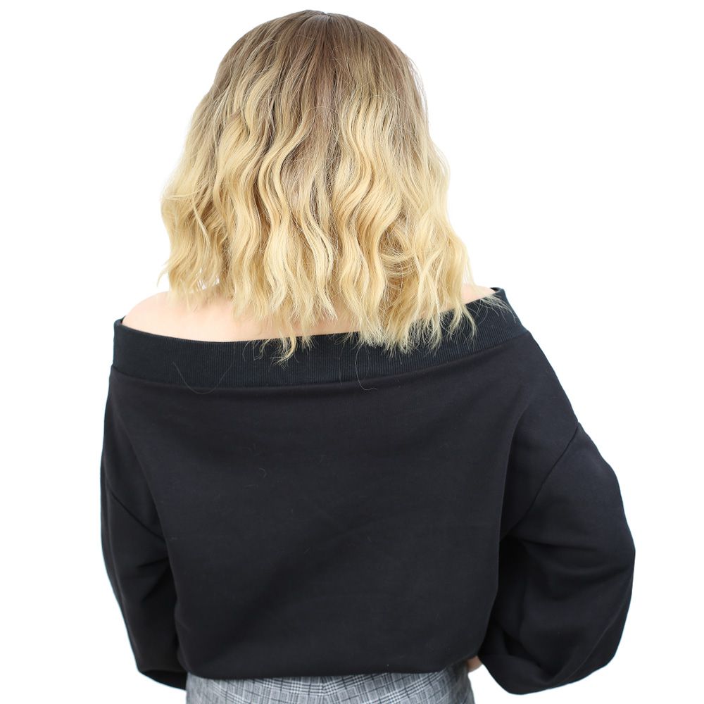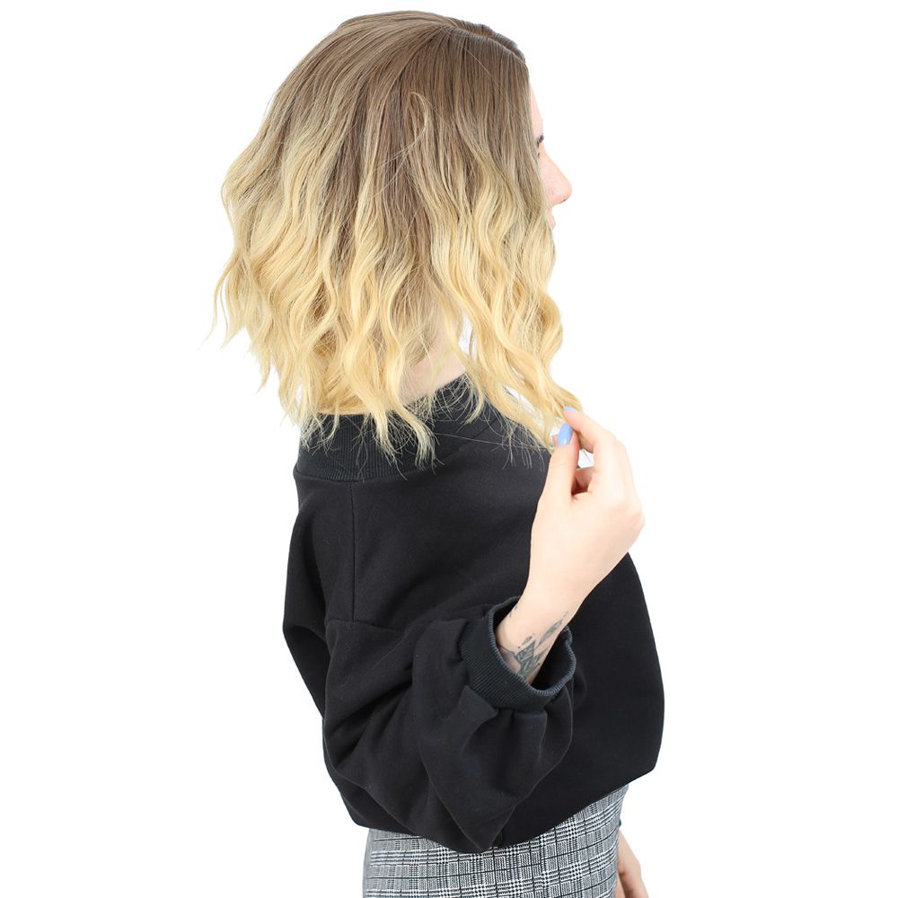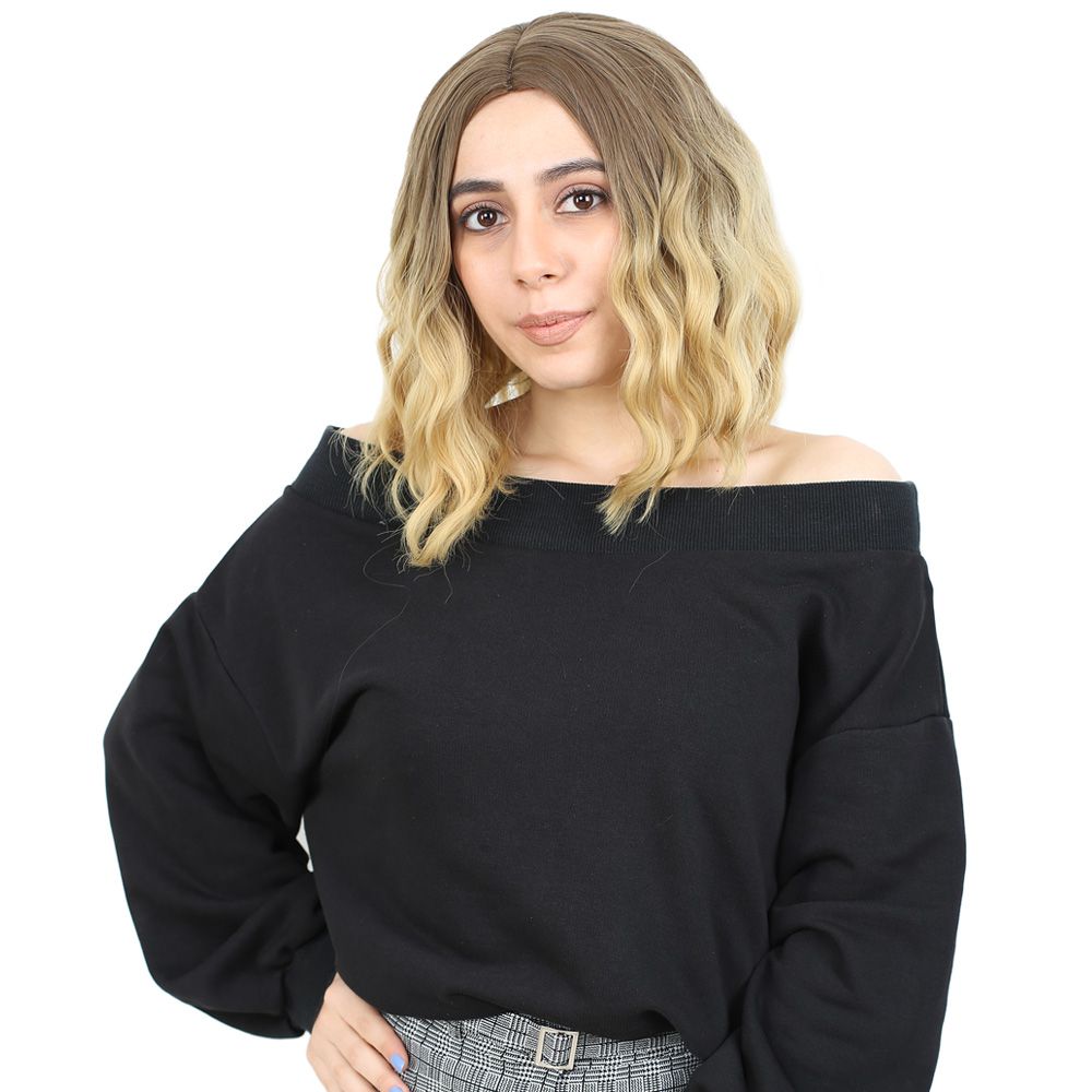 Fiber Sentetik Kısa Dalgalı Perçemsiz Peruk - Kumral / Sarı Ombreli