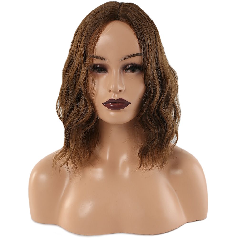 Fiber Sentetik Kısa Dalgalı Perçemsiz Peruk - Kumral