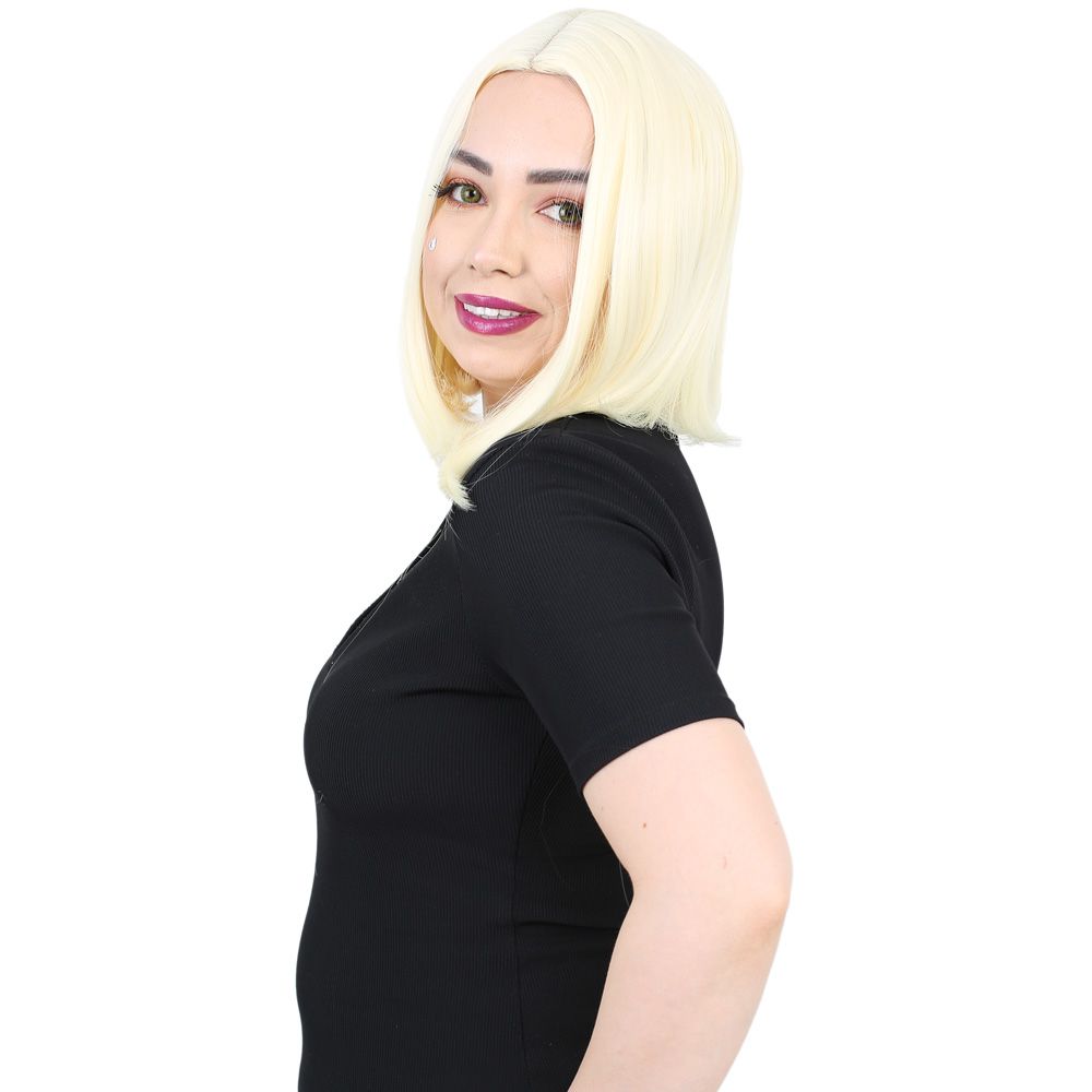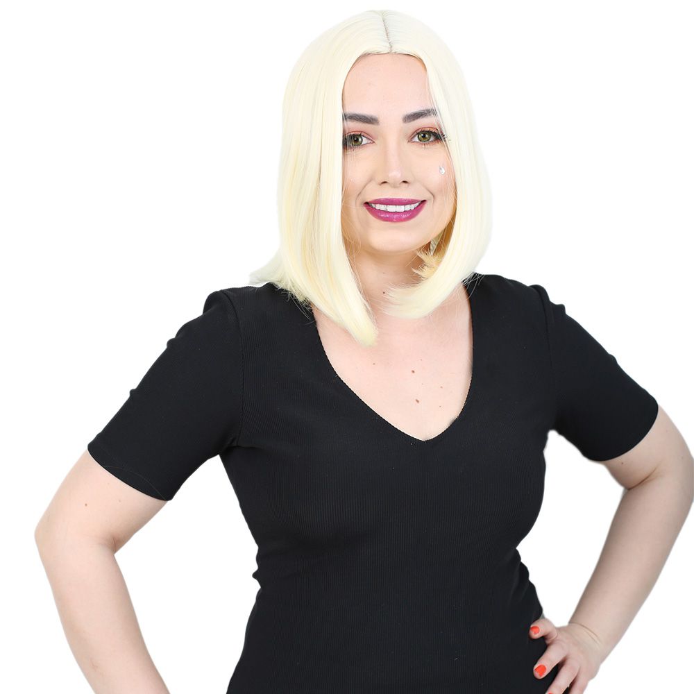 Fiber Sentetik Peruk Perçemsiz Kısa Düz - Açık Platin
