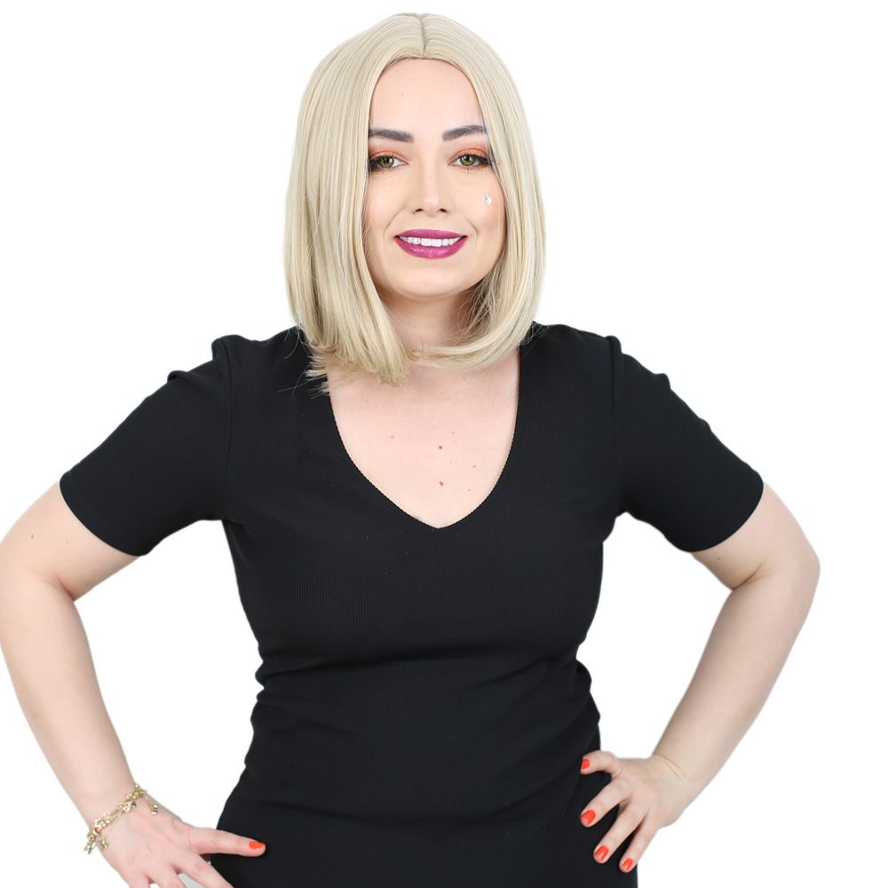 Fiber Sentetik Peruk Perçemsiz Kısa Düz - Balköpüğü / Platin Röfleli