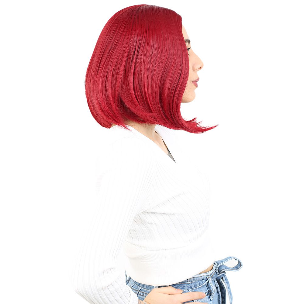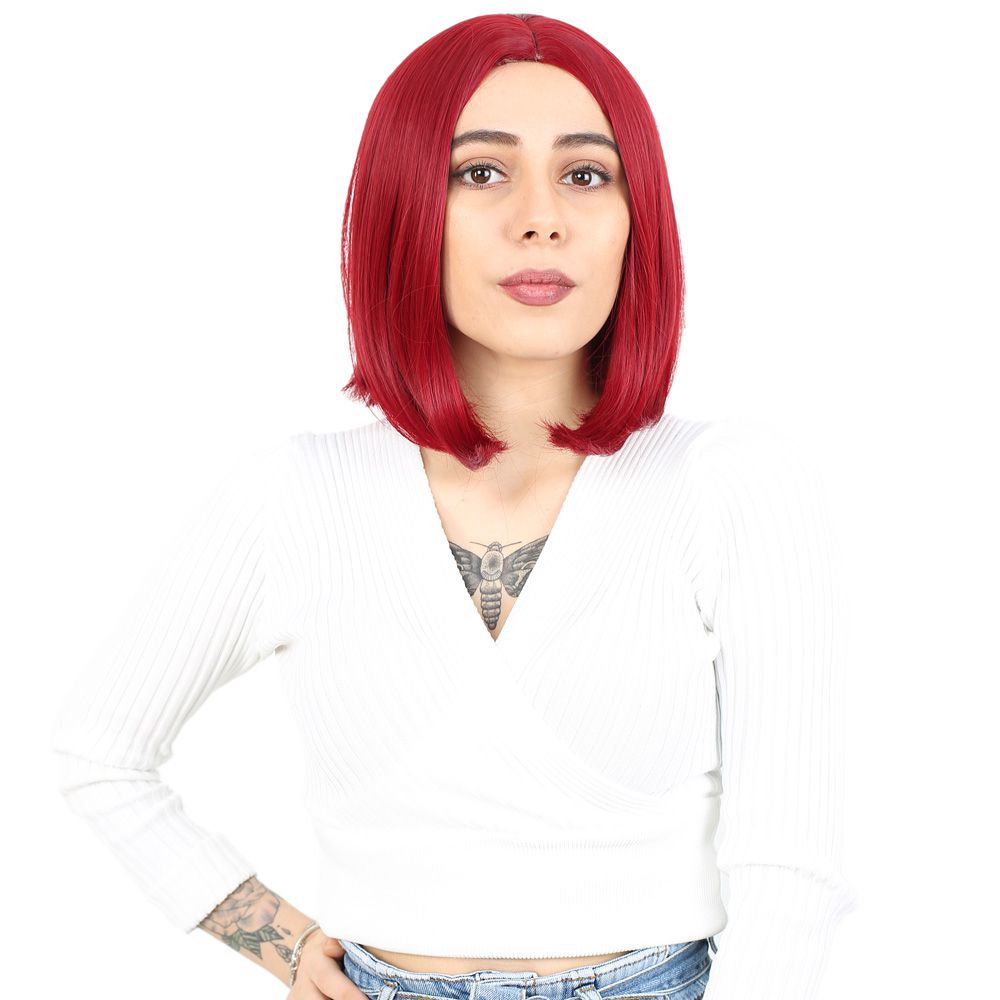 Fiber Sentetik Peruk Perçemsiz Kısa Düz - Kızıl