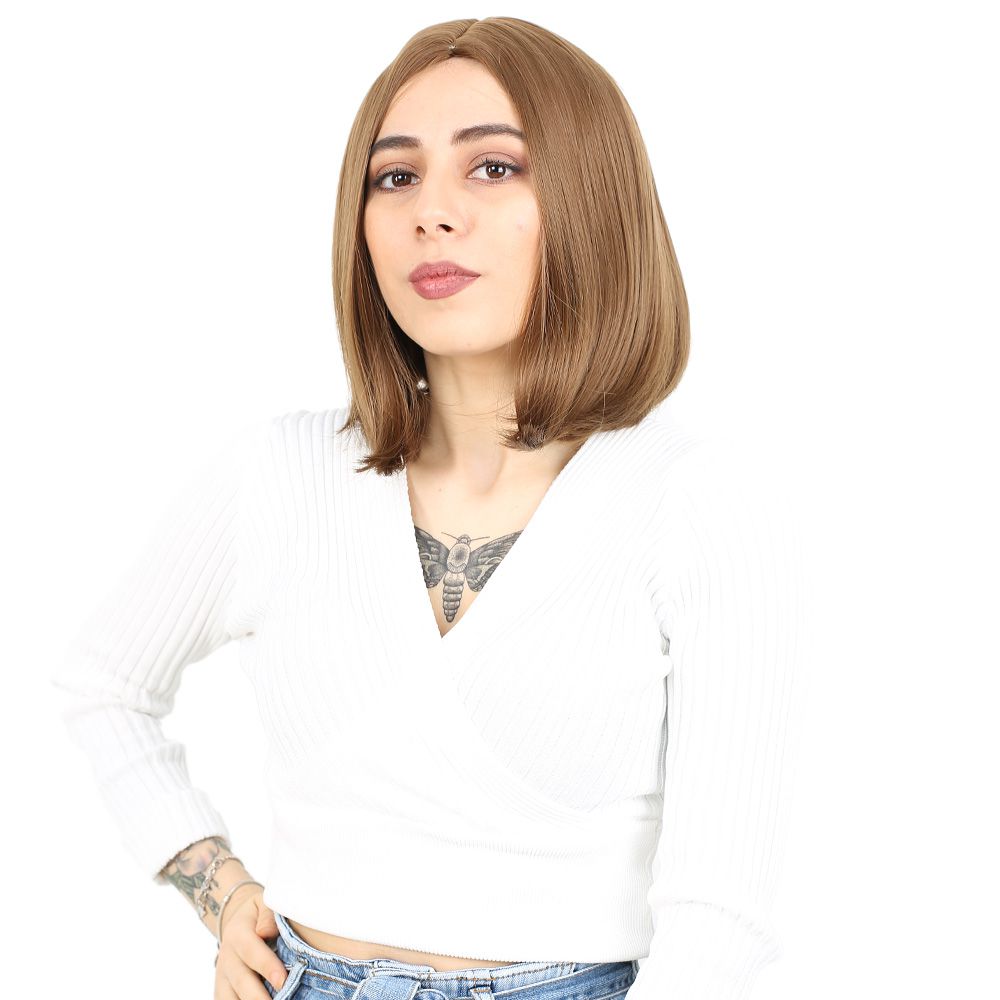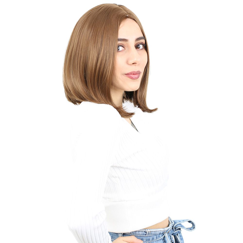 Fiber Sentetik Peruk Perçemsiz Kısa Düz - Kumral