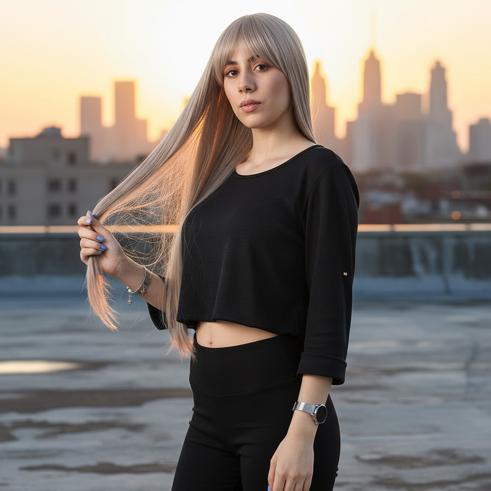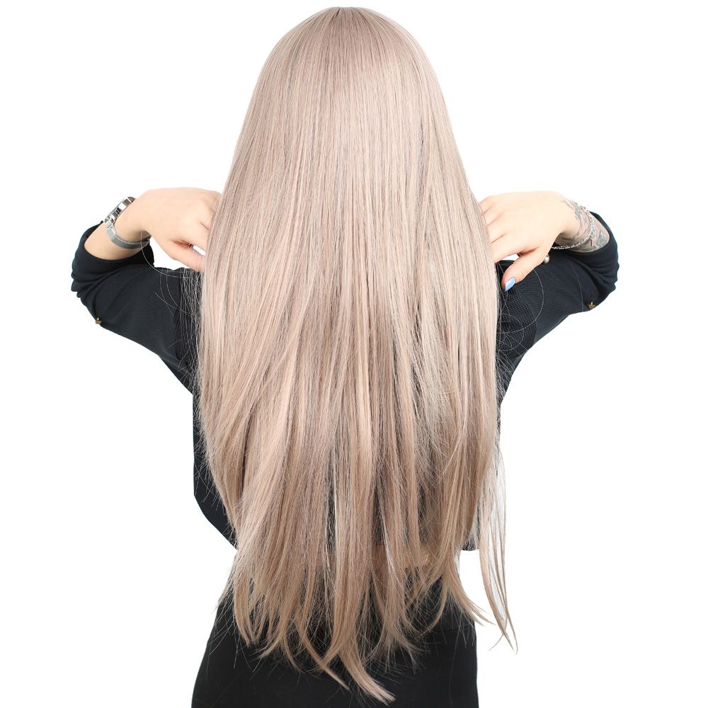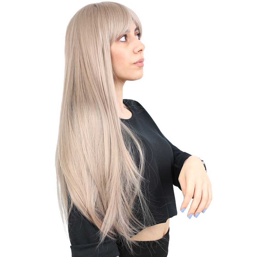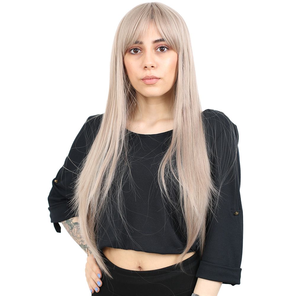 Fiber Sentetik Uzun Düz Kahküllü Peruk - Küllü Bebek Sarı