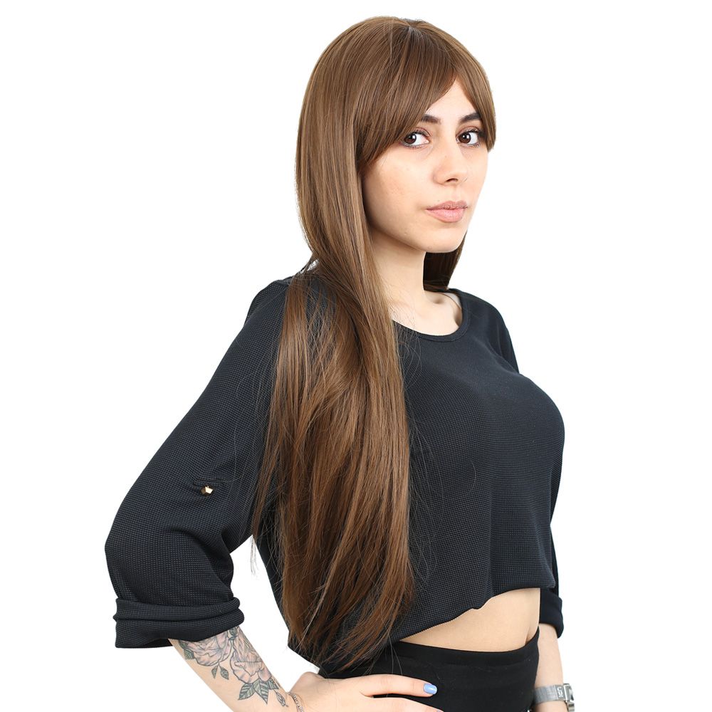 Fiber Sentetik Uzun Düz Kahküllü Peruk - Kumral