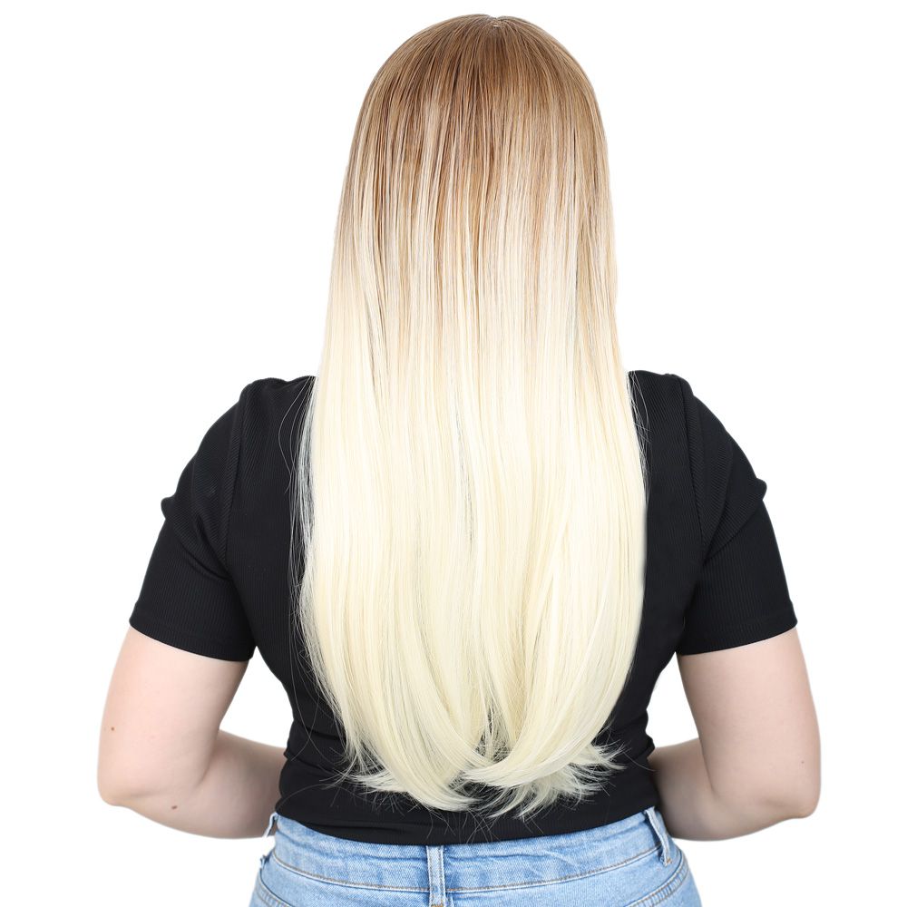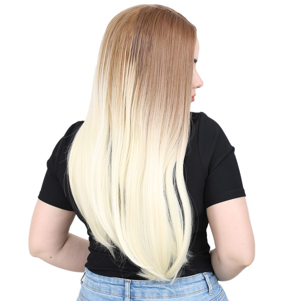 Fiber Sentetik Uzun Düz Peruk - Balköpüğü / Platin Ombreli