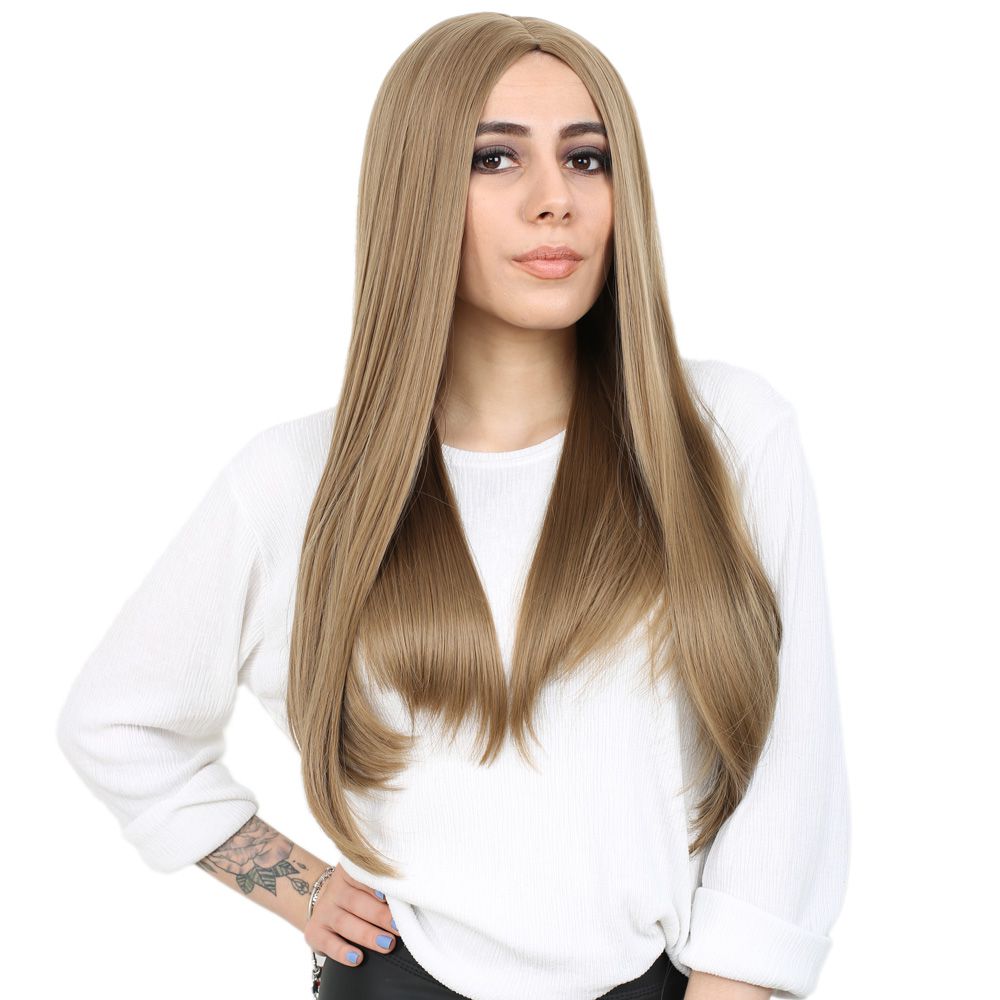 Fiber Sentetik Uzun Düz Peruk - Bebek Kumralı