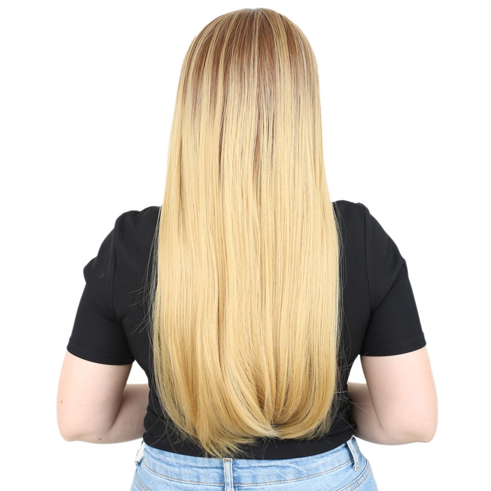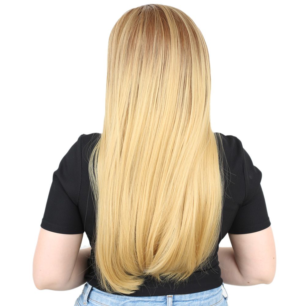 Fiber Sentetik Uzun Düz Peruk - Kumral / Sarı Ombreli