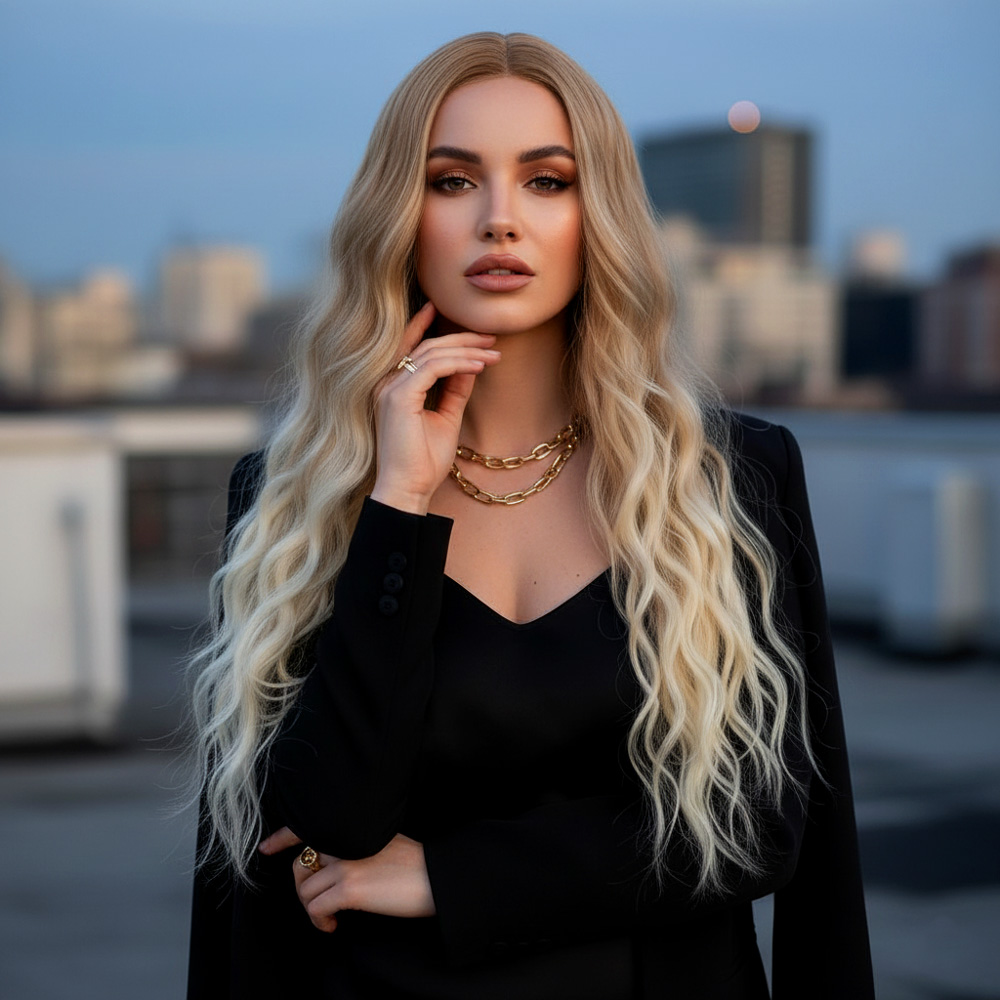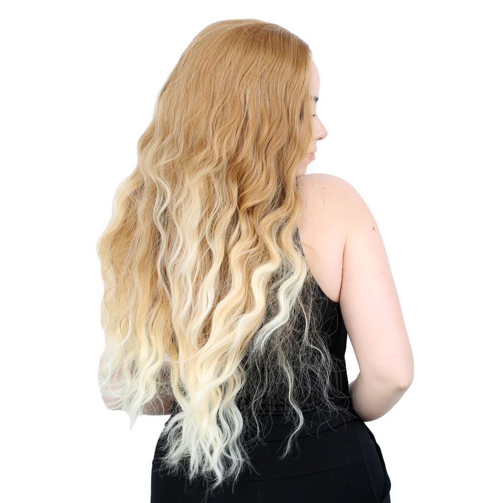 Fiber Sentetik Uzun Su Dalgası Peruk - Balköpüğü / Platin Kısa Ombreli