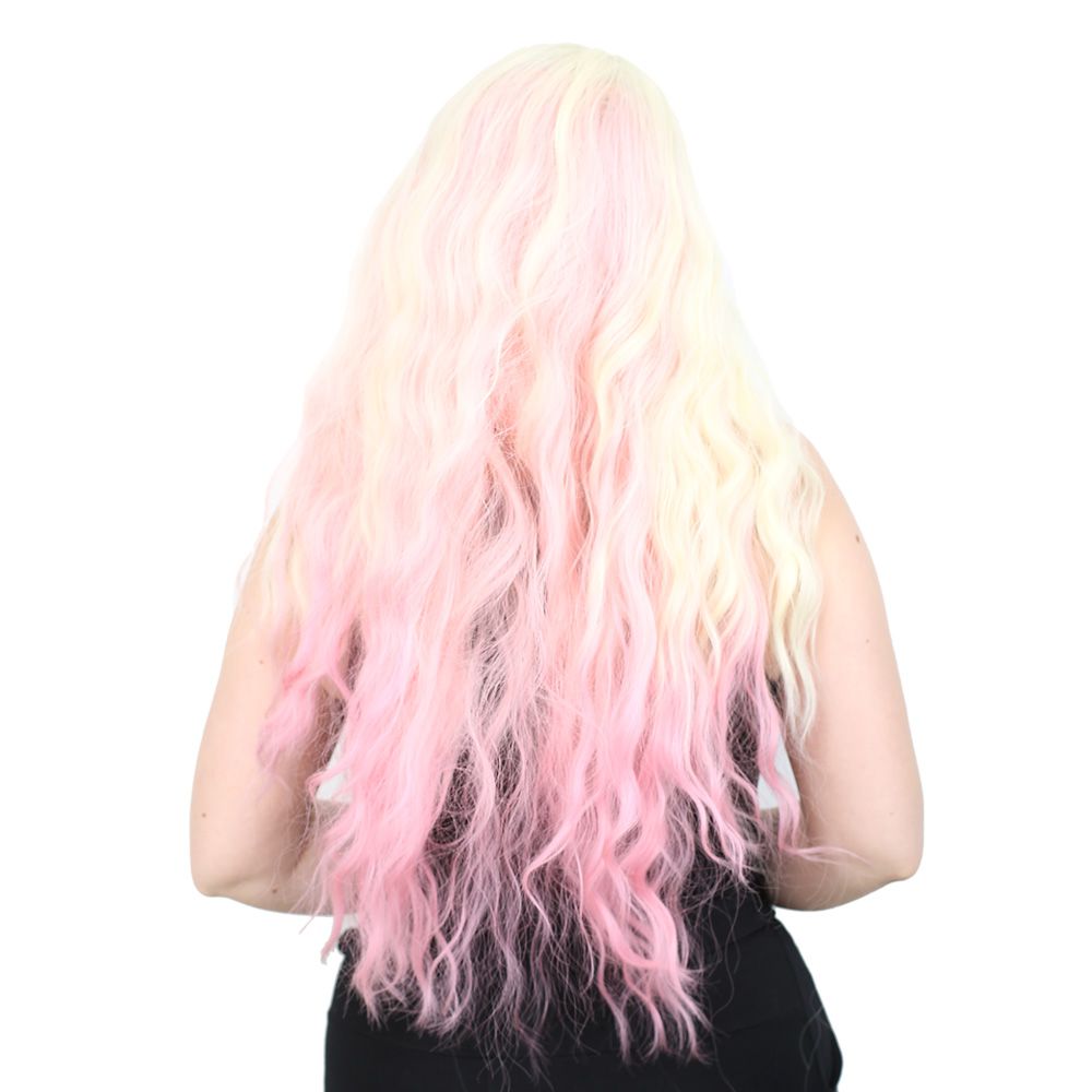 Fiber Sentetik Uzun Su Dalgası Peruk - Platin / Pembe Ombreli
