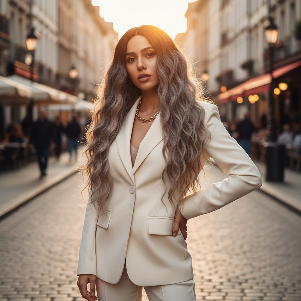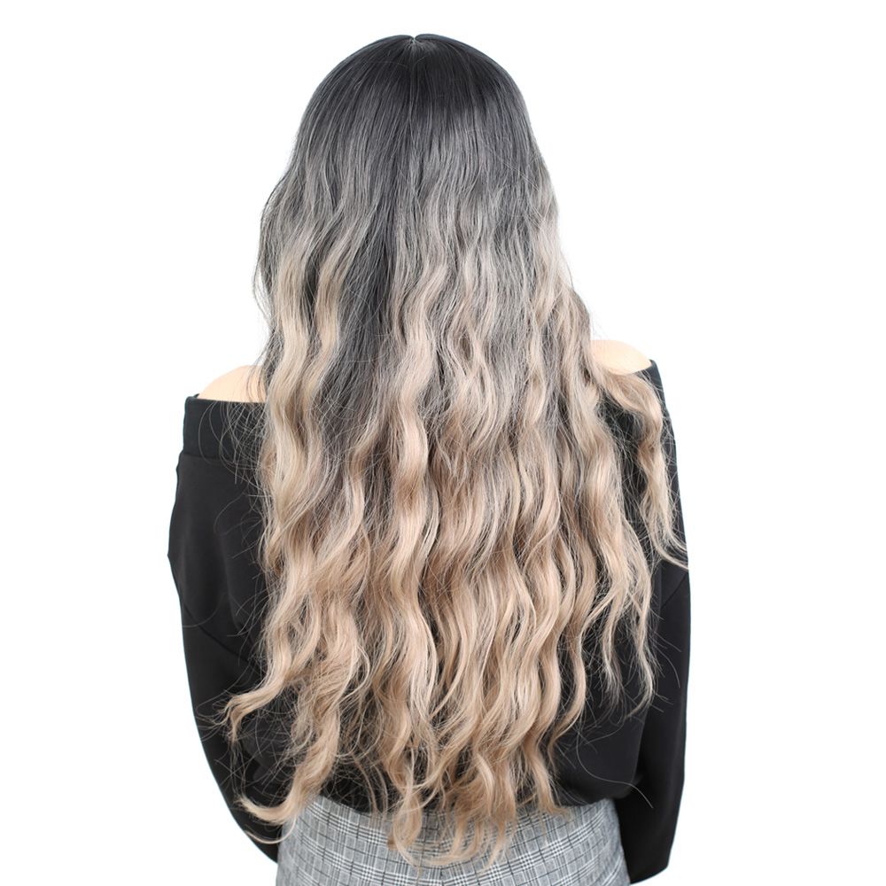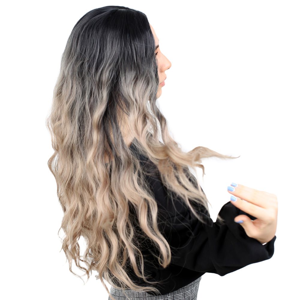 Fiber Sentetik Uzun Su Dalgası Peruk - Siyah / Küllü Platin Ombreli