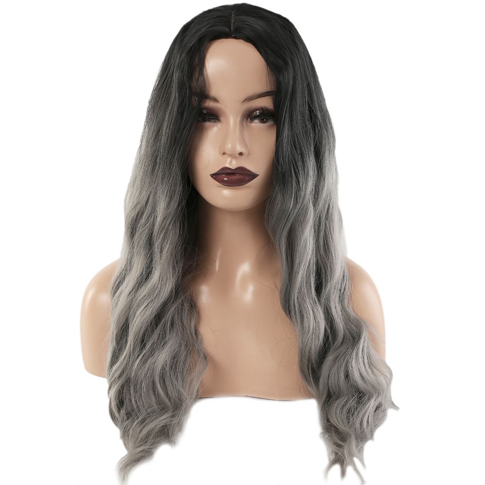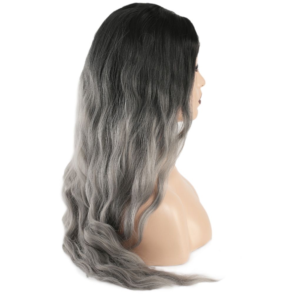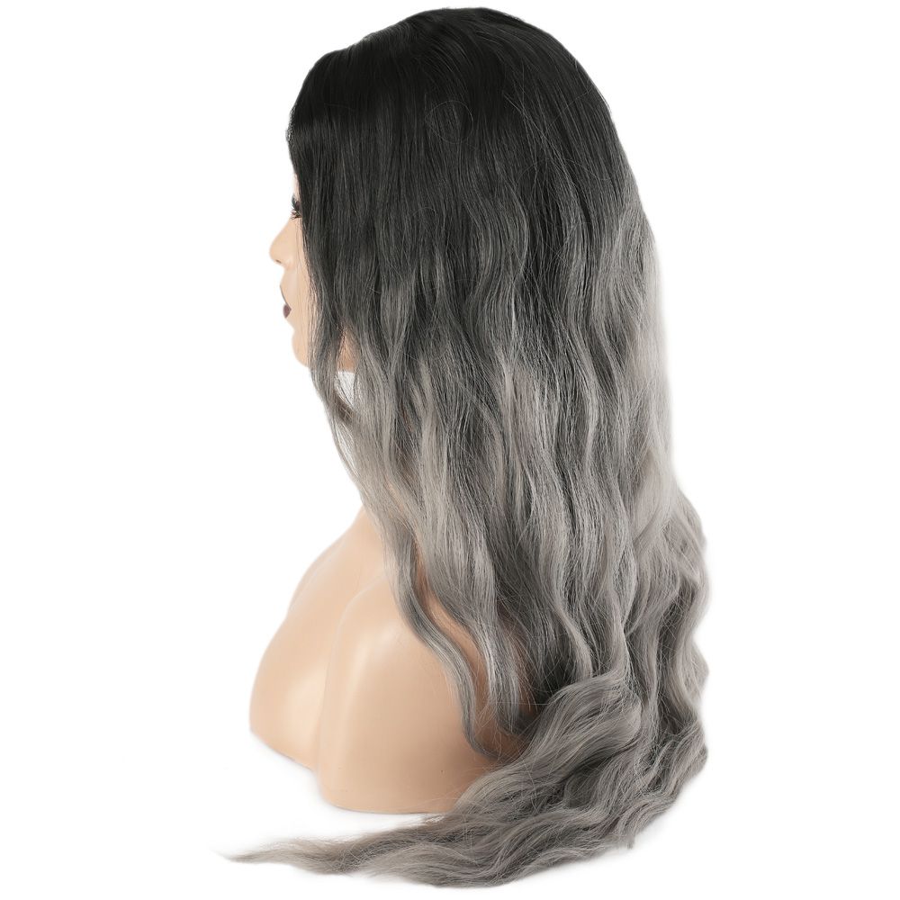 Fiber Sentetik Uzun Su Dalgası Peruk - Siyah Gri Ombreli