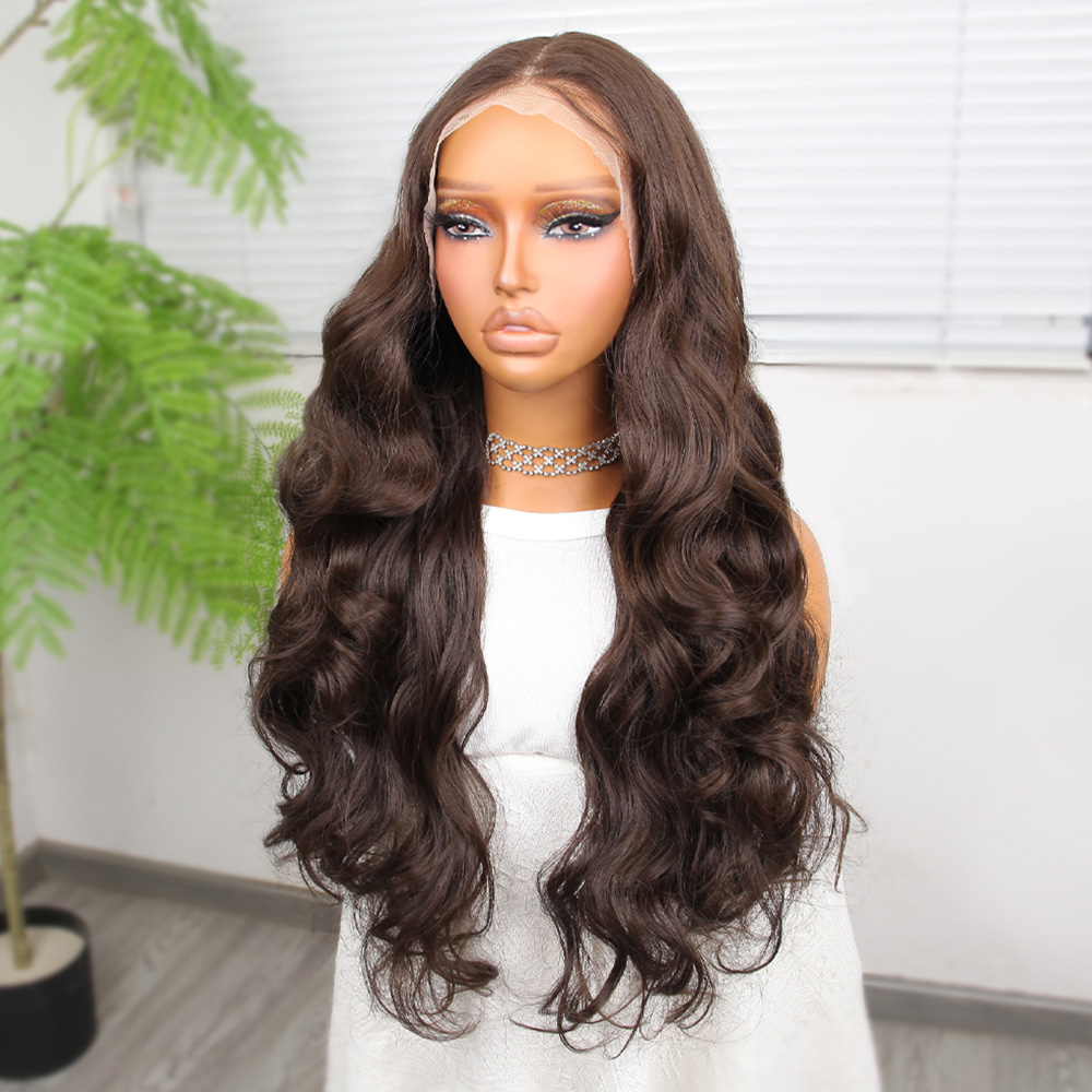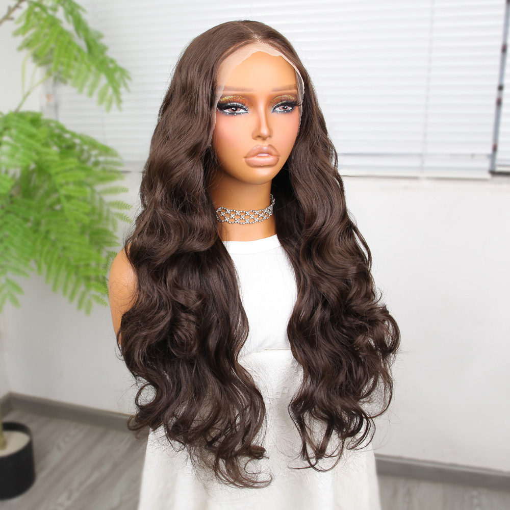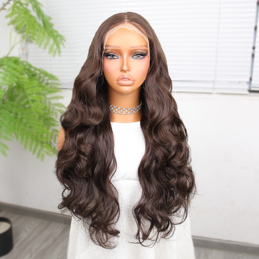 Koyu Kumral Ekstra Uzun Fiber Sentetik Dalgalı Tül Peruk