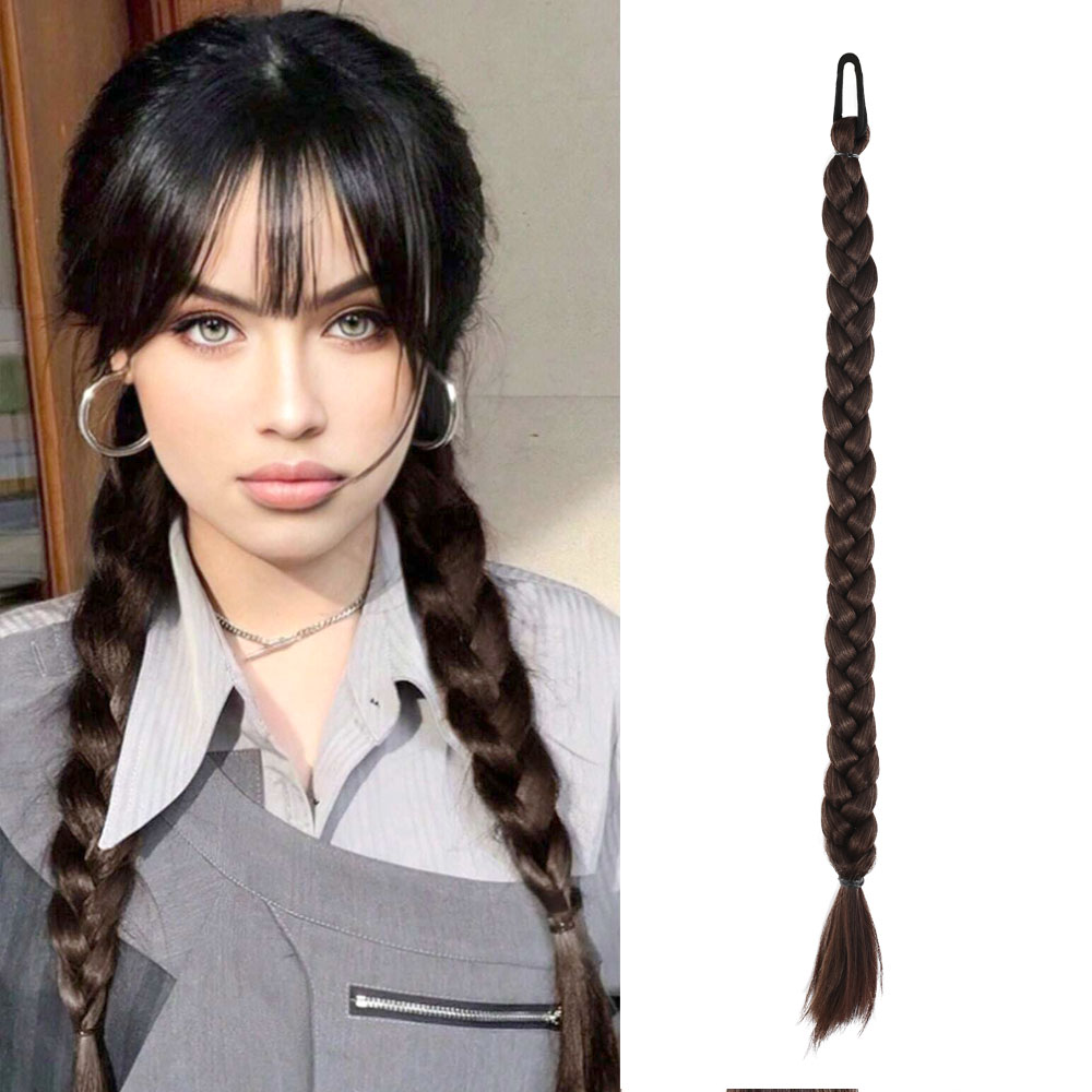 İkili Örgü Lastik Tokalı At Kuyruğu - Kahve Karamel