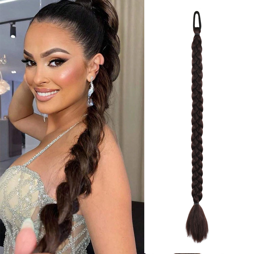 İkili Örgü Lastik Tokalı At Kuyruğu - Kahverengi