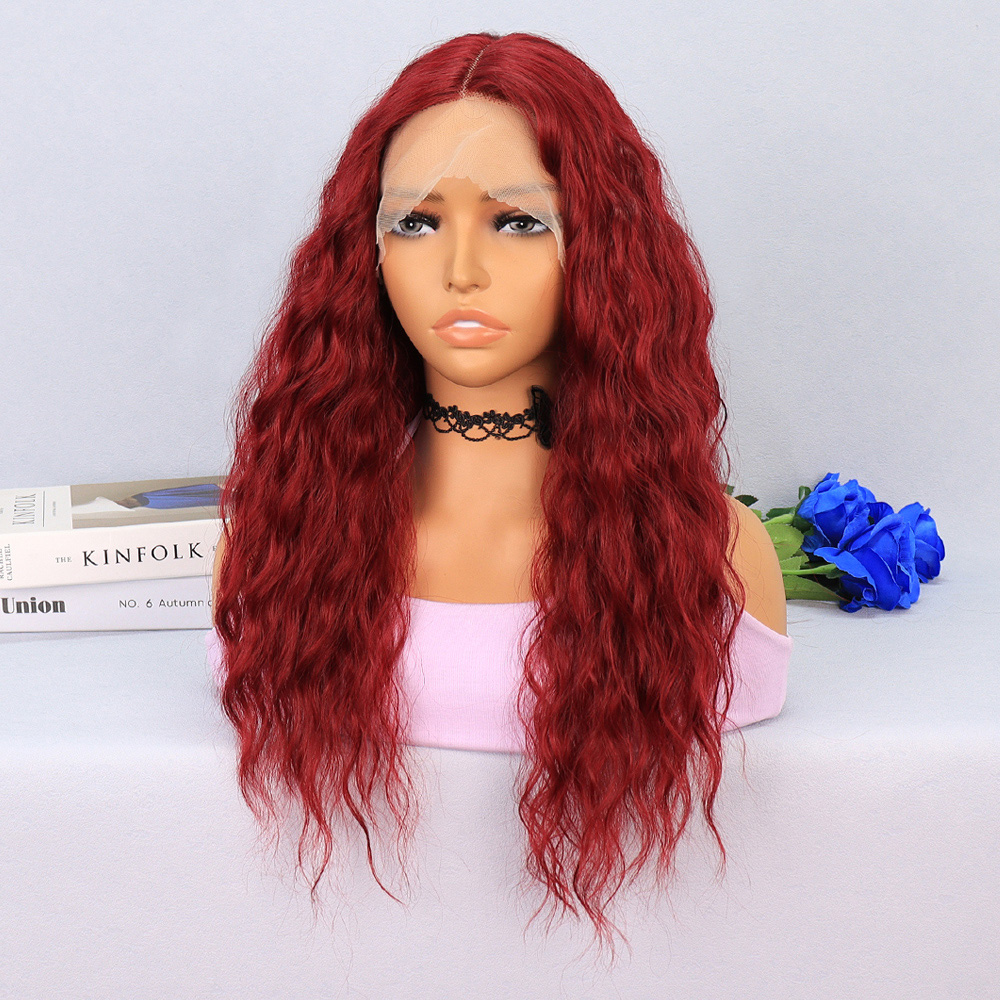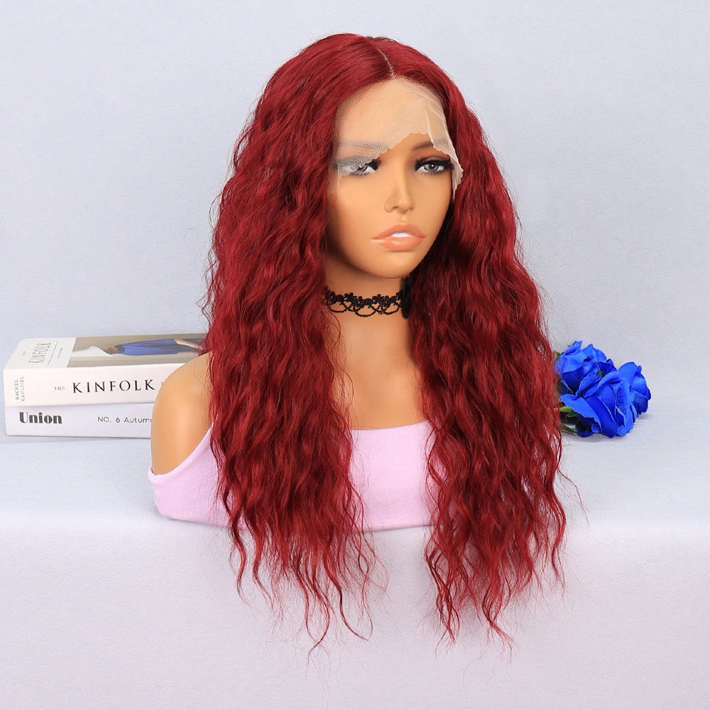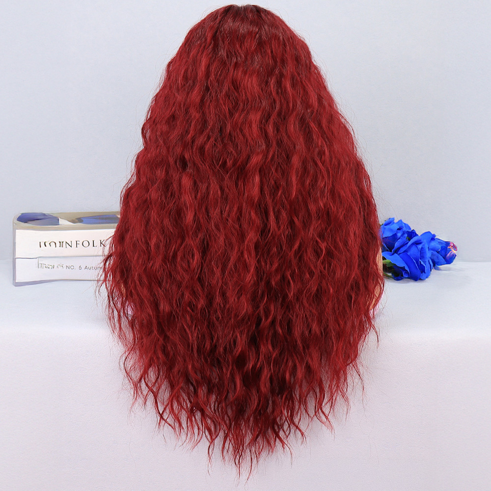 Kızıl Kahve Fiber Sentetik Geniş Dalgalı Tül Peruk