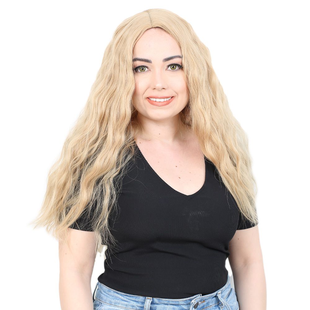 Kabarık Dalgalı Uzun Fiber Sentetik Peruk - Balköpüğü