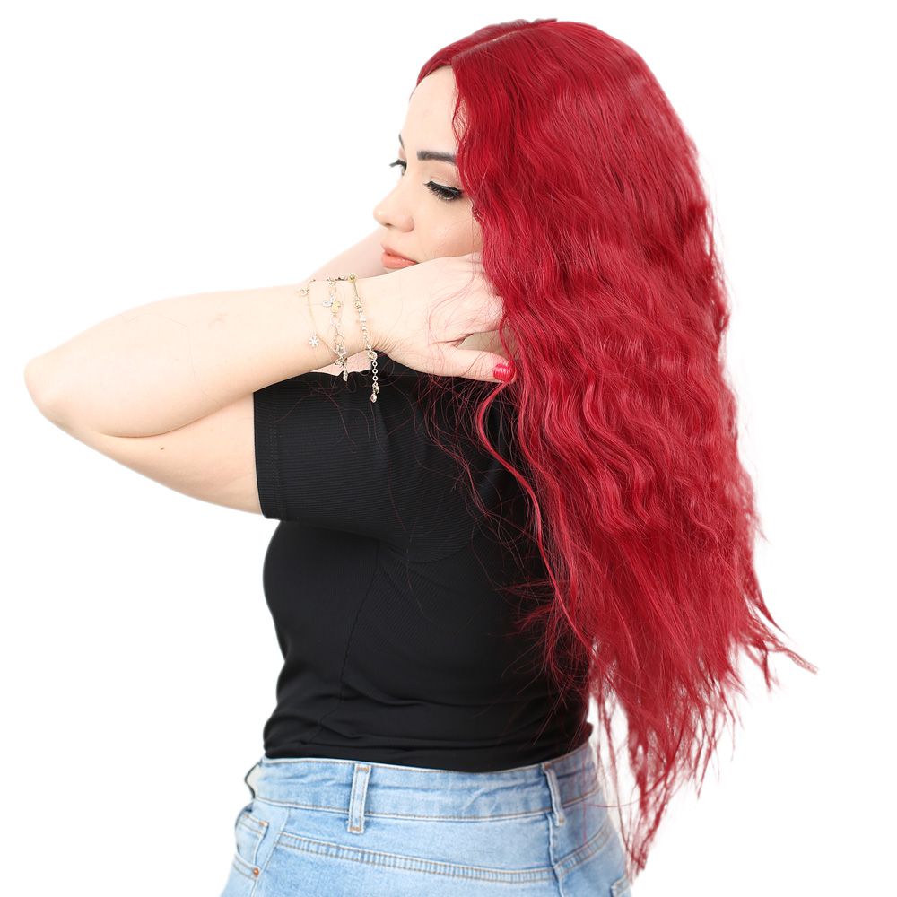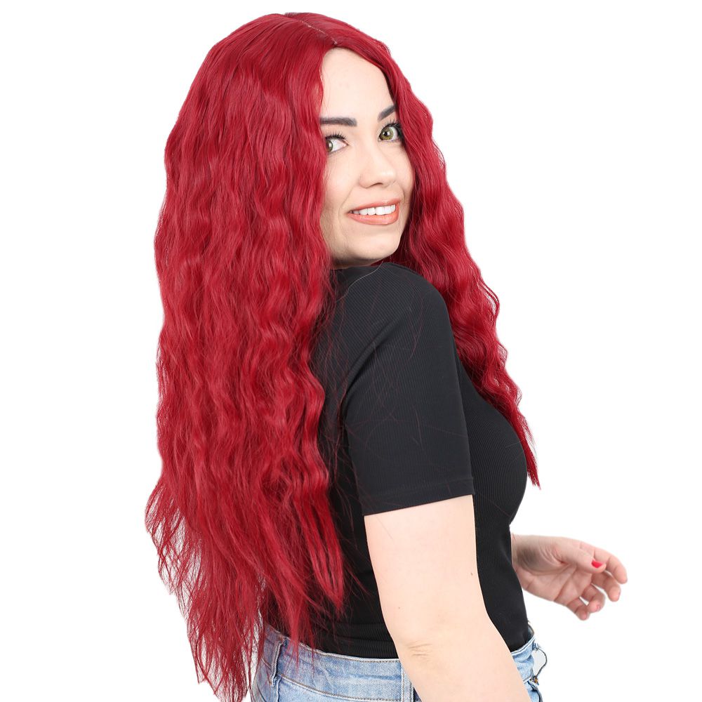 Kabarık Dalgalı Uzun Fiber Sentetik Peruk - Kızıl