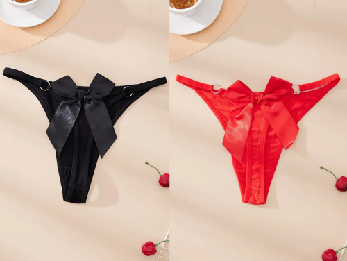 Fantezi 2'li (Kırmızı & Siyah) Fiyonklu Halka Detaylı Dalgıç Tanga , estetik görünümü ve rahat kullanımıyla en özel anlarınıza yönelik mükemmel bir seçimdir.