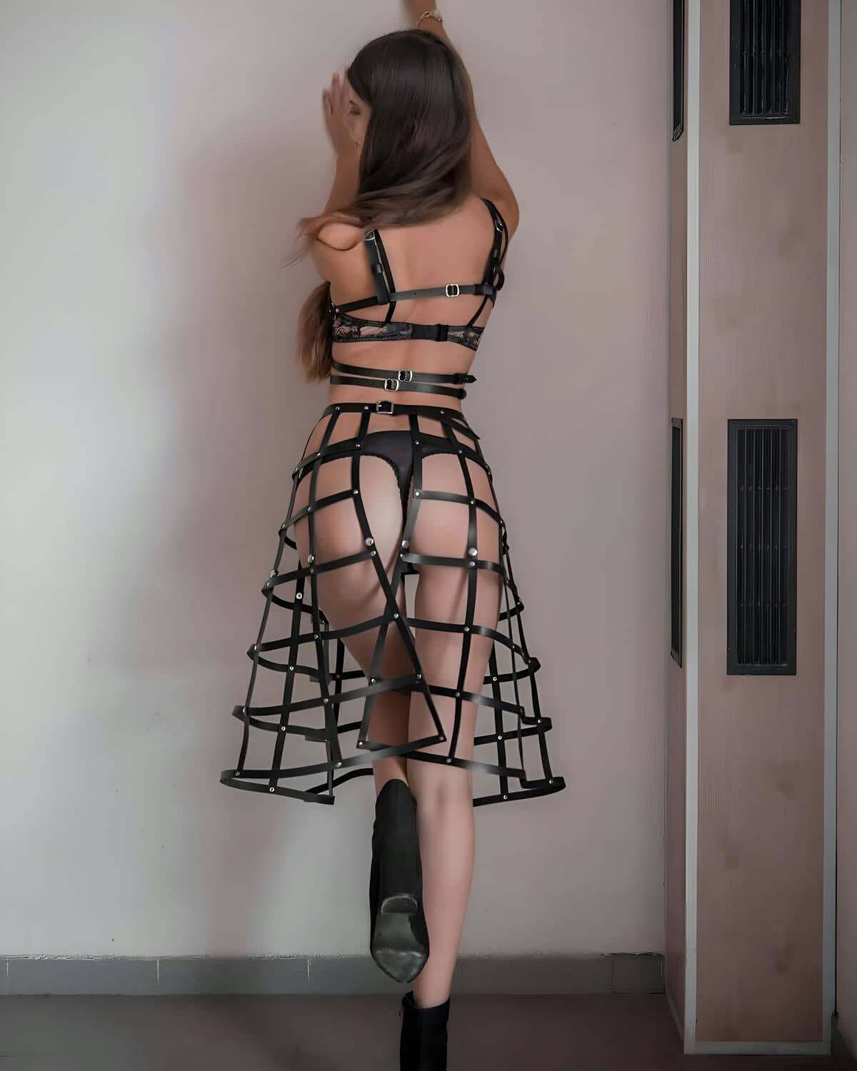 • Ürün ve paket içeriği: 2 parça (1 ad. Deri Göğüs Harness , 1 ad. Deri Etek Harness) İç çamaşırı dahil değildir.