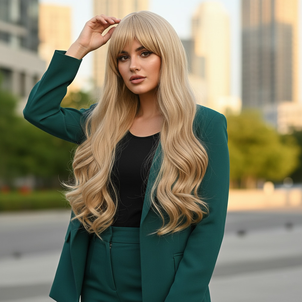 Kahküllü Uzun Dalgalı Fiber Sentetik Peruk - Balköpüğü