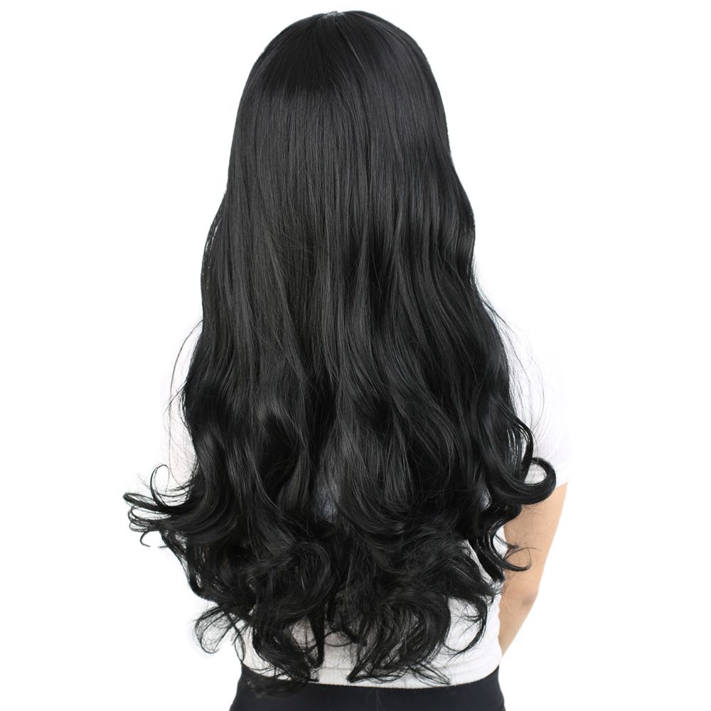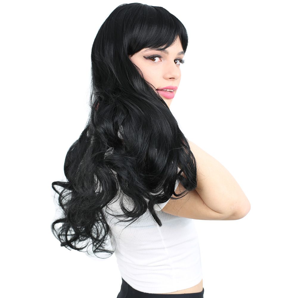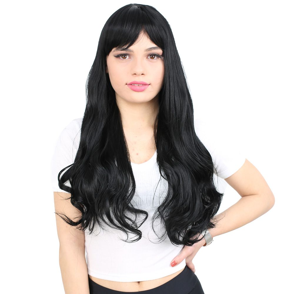 Kahküllü Uzun Dalgalı Fiber Sentetik Peruk - Siyah
