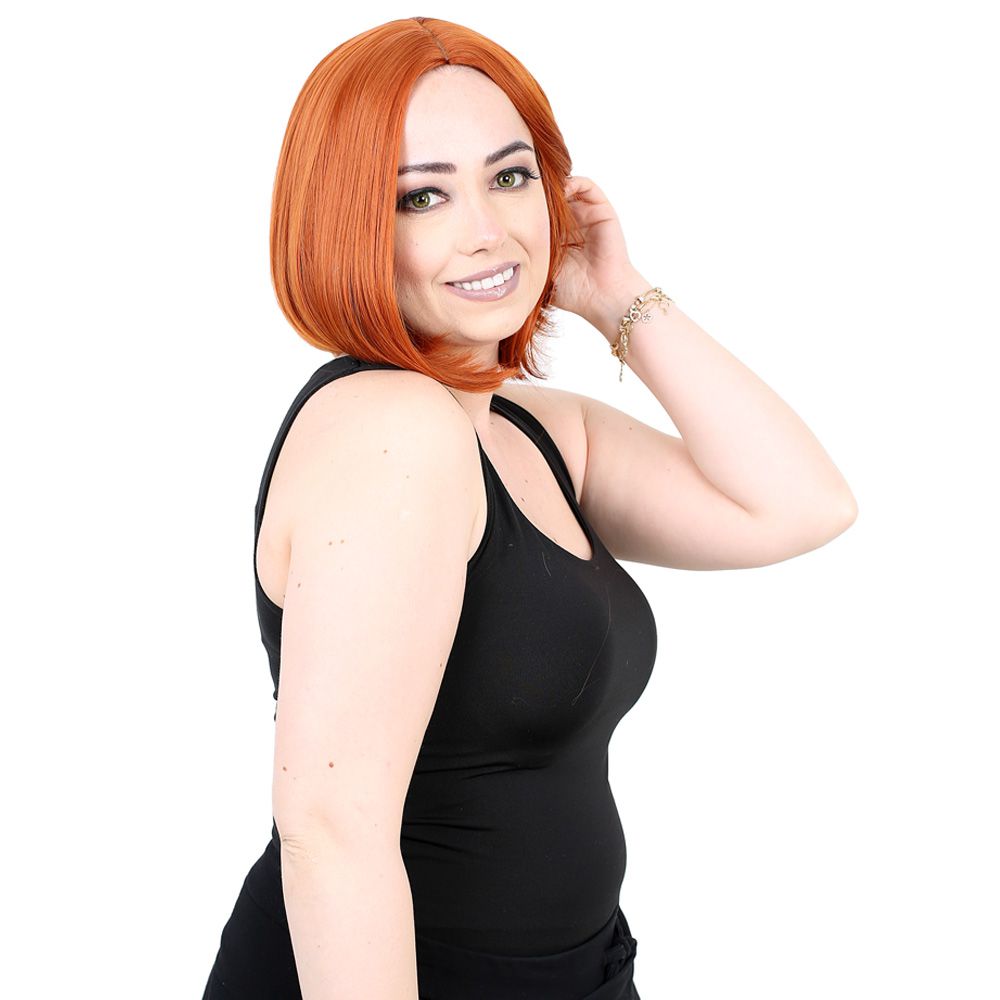 Kahkülsüz Düz Kısa Fiber Sentetik Peruk - Bakır
