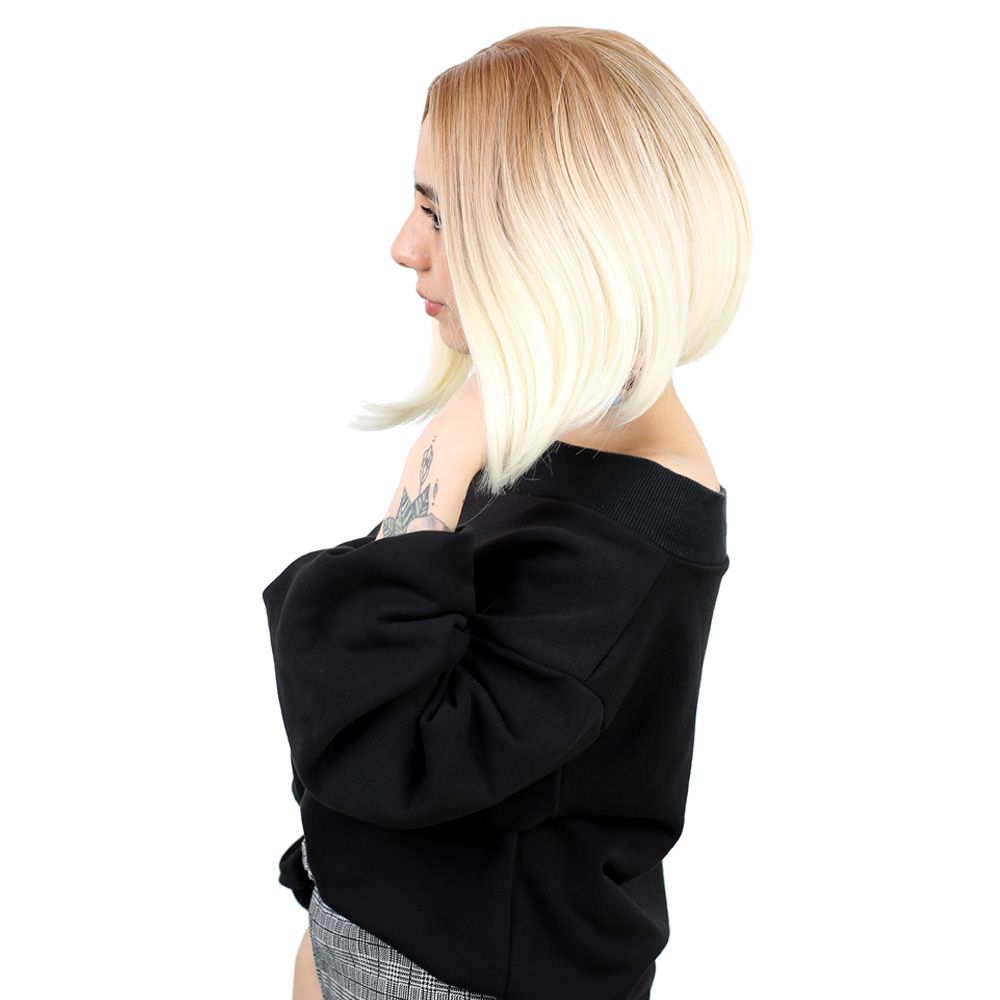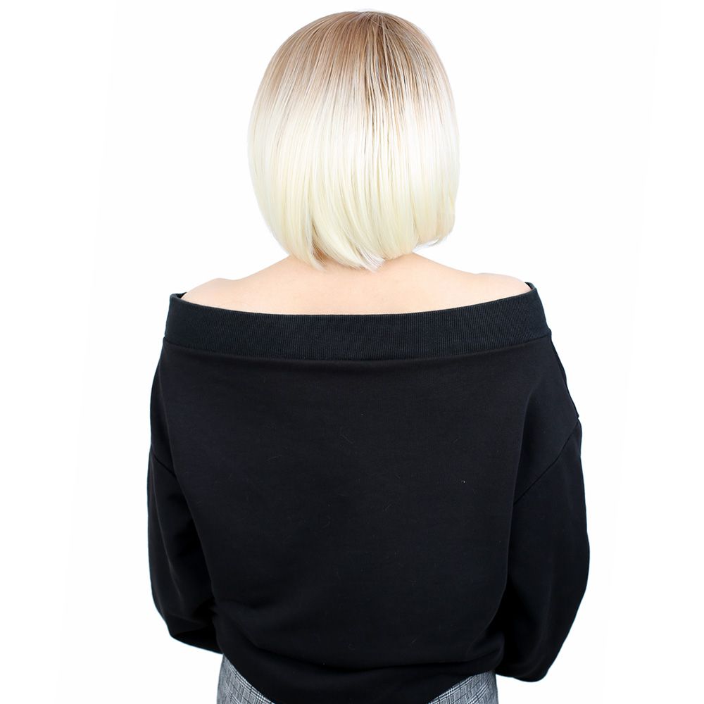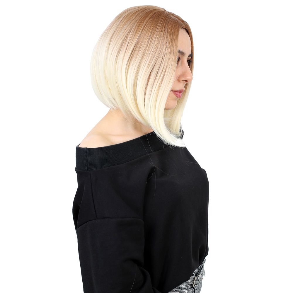 Kahkülsüz Düz Kısa Fiber Sentetik Peruk - Balköpüğü / Platin Ombreli
