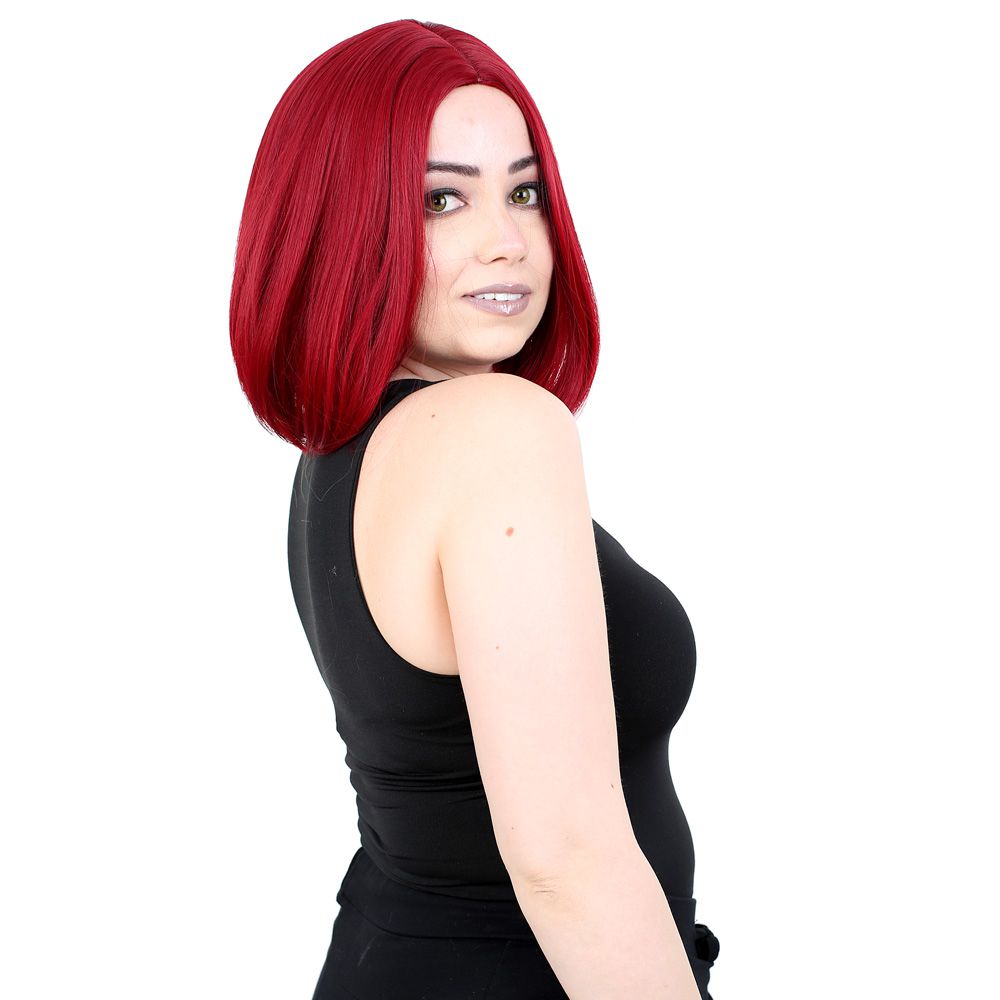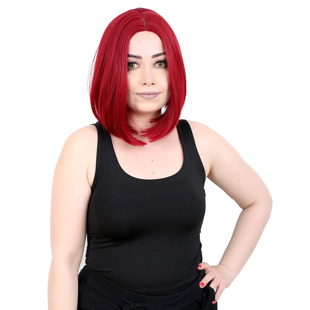 Kahkülsüz Düz Kısa Fiber Sentetik Peruk - Kızıl