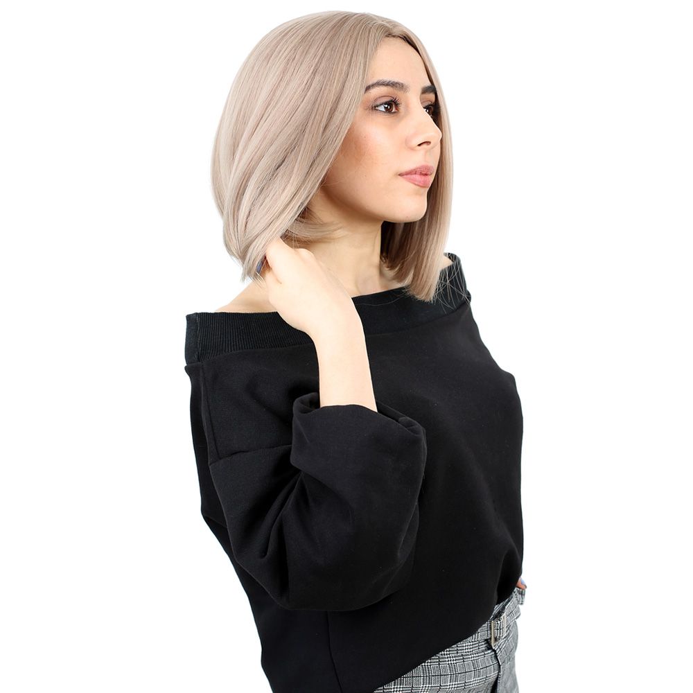 Kahkülsüz Düz Kısa Fiber Sentetik Peruk - Küllü Bebek Sarı