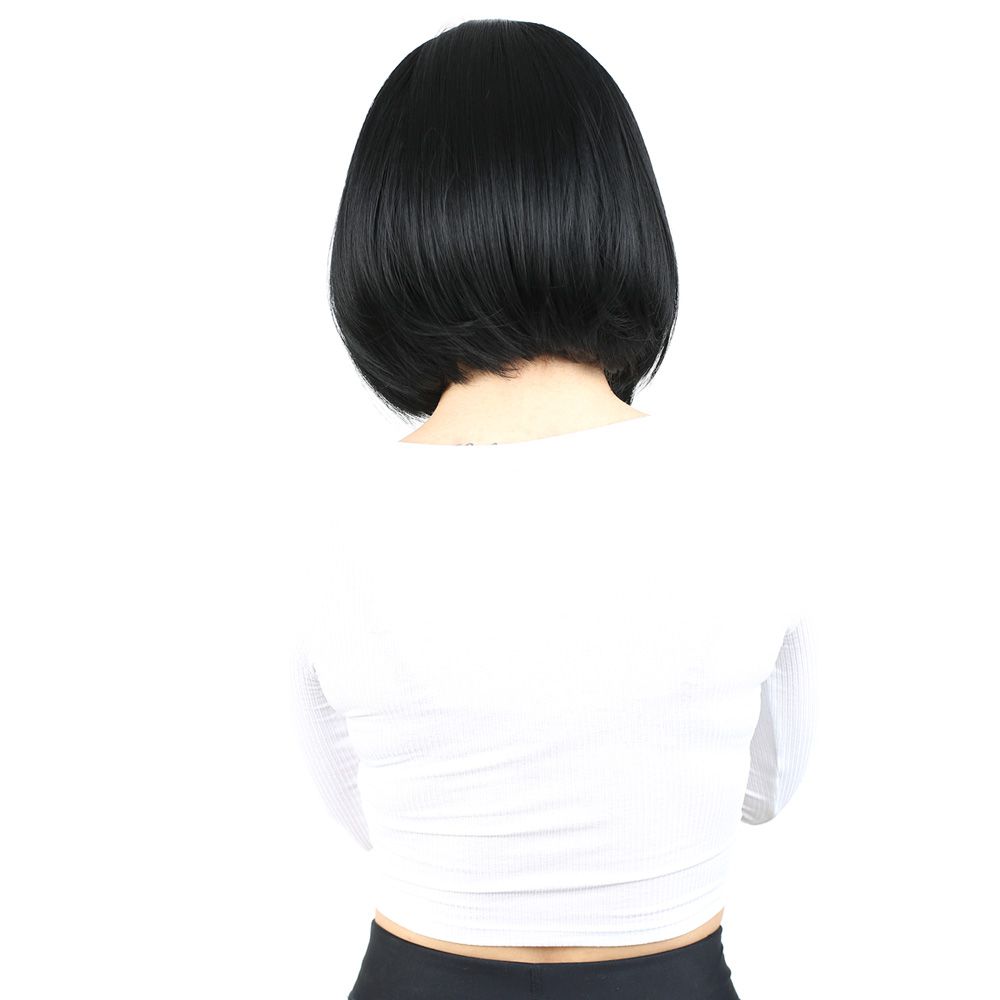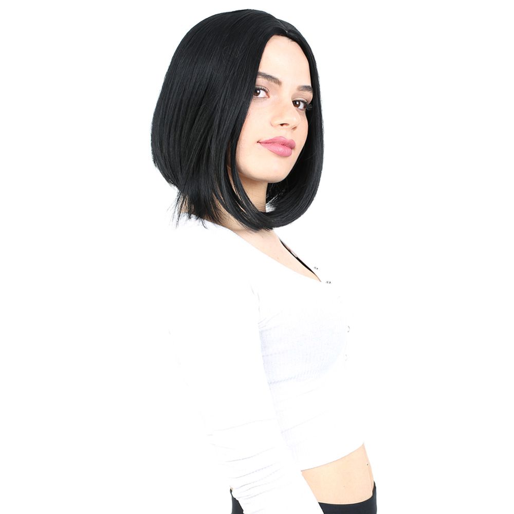 Kahkülsüz Düz Kısa Fiber Sentetik Peruk - Siyah