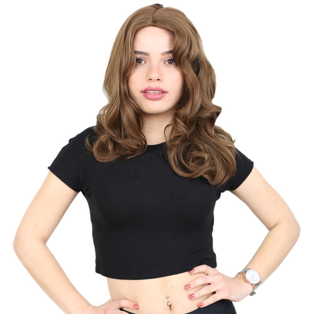 Kahkülsüz Fiber Sentetik Orta Boy Dalgalı Peruk - Kumral