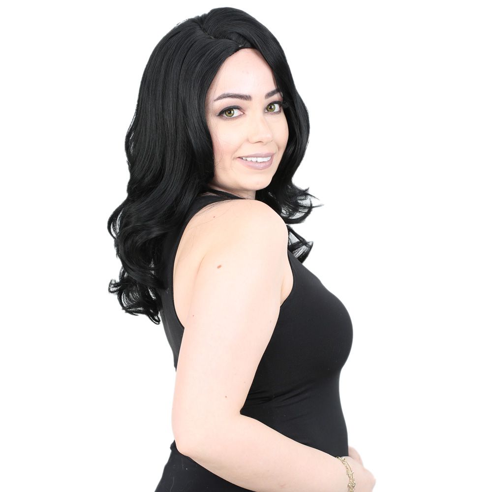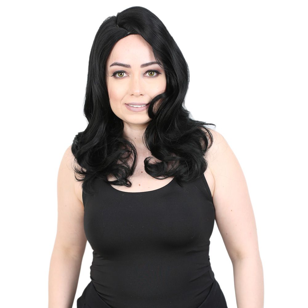 Kahkülsüz Fiber Sentetik Orta Boy Dalgalı Peruk - Siyah