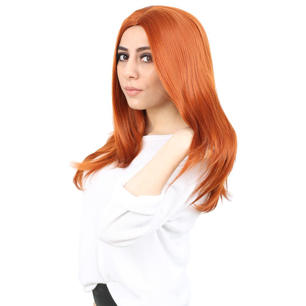 Kahkülsüz Fiber Sentetik Orta Boy Düz Peruk - Bakır