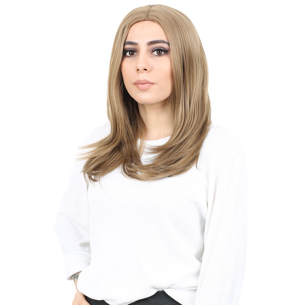 Kahkülsüz Fiber Sentetik Orta Boy Düz Peruk - Bebek Kumralı