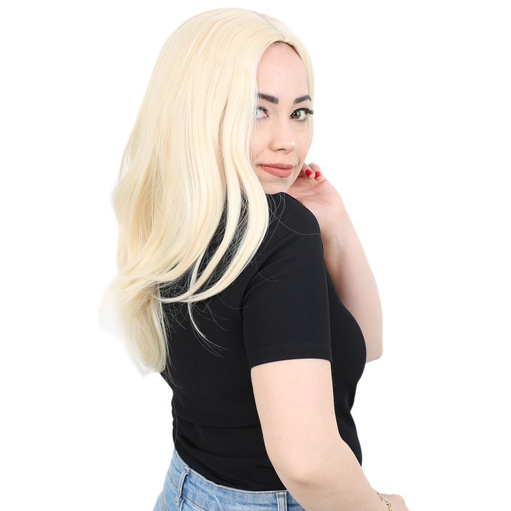 Kahkülsüz Fiber Sentetik Orta Boy Düz Peruk - Platin