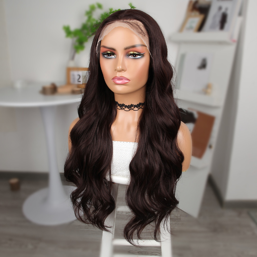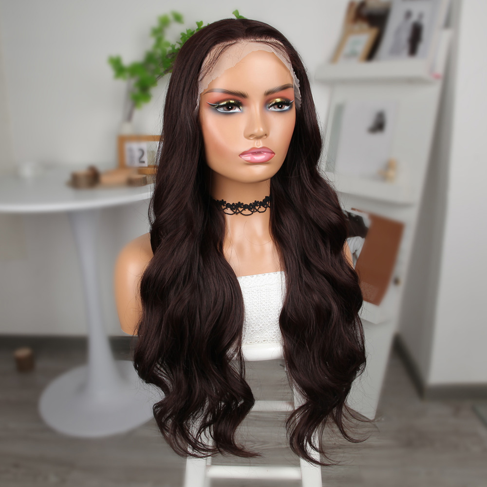 Koyu Kumral Ekstra Uzun Fiber Sentetik Dalgalı Tül Peruk