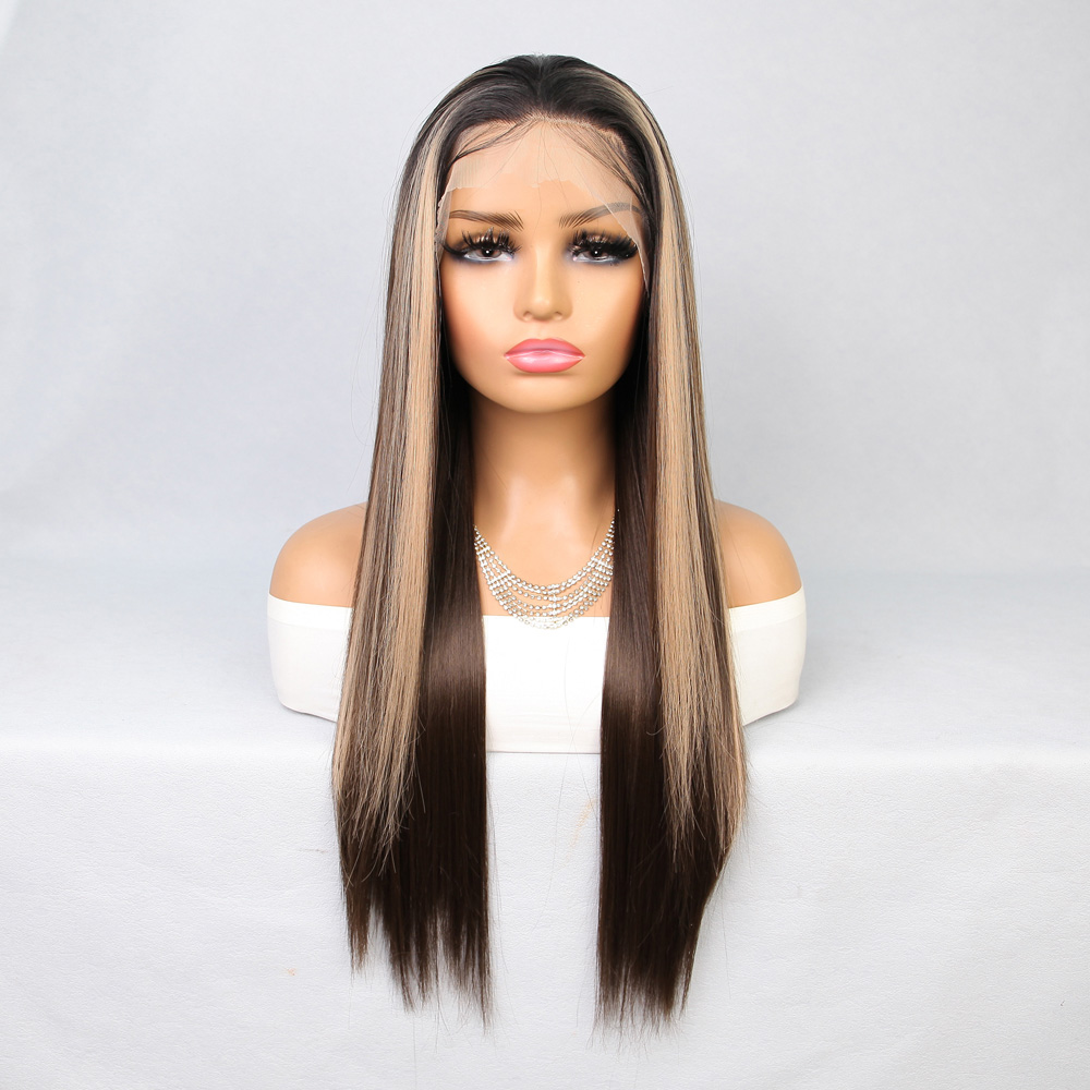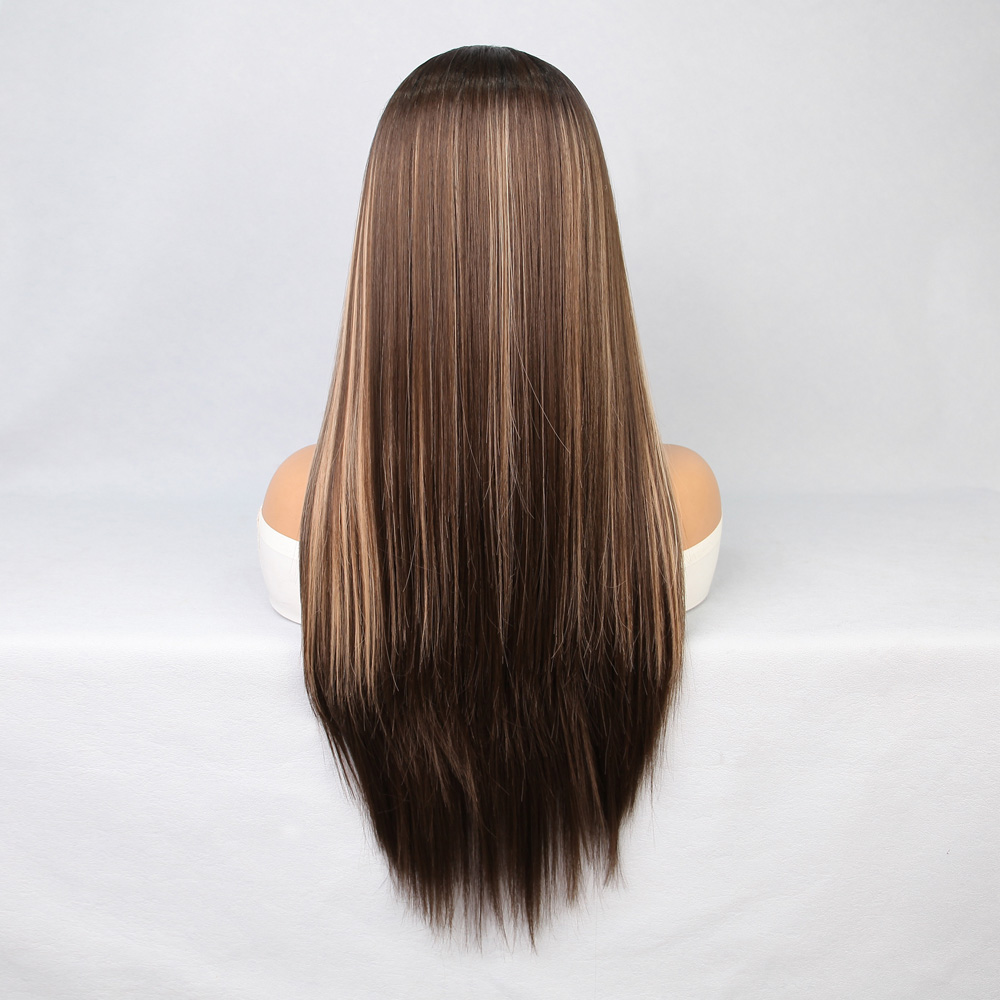 Perçemli Uzun Su Dalgası Fiber Sentetik Peruk- Ombre ve Röfleli