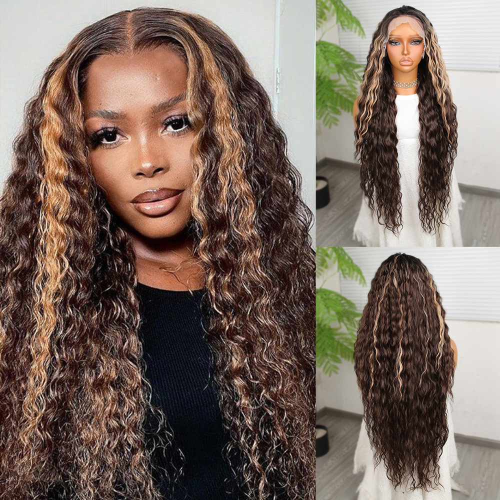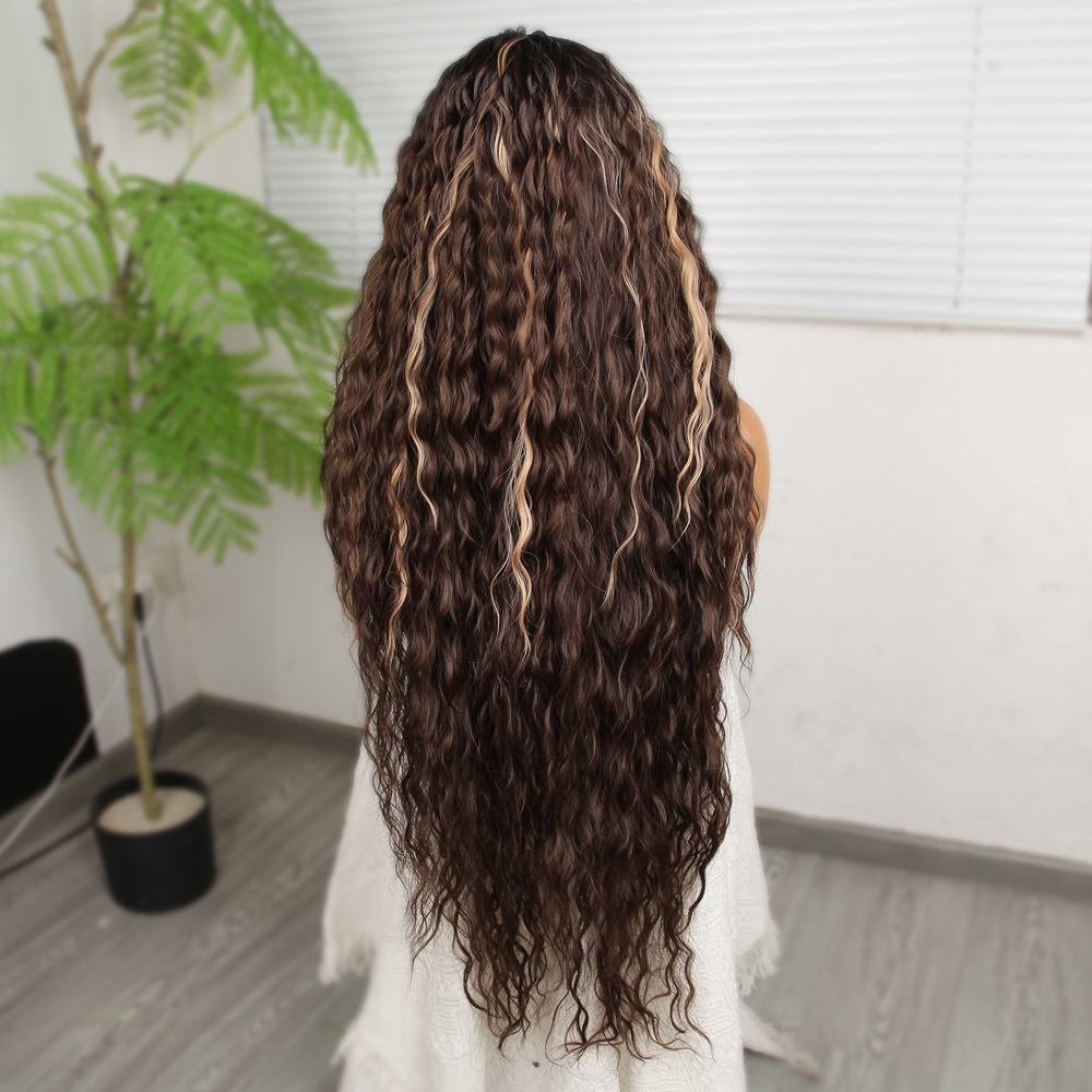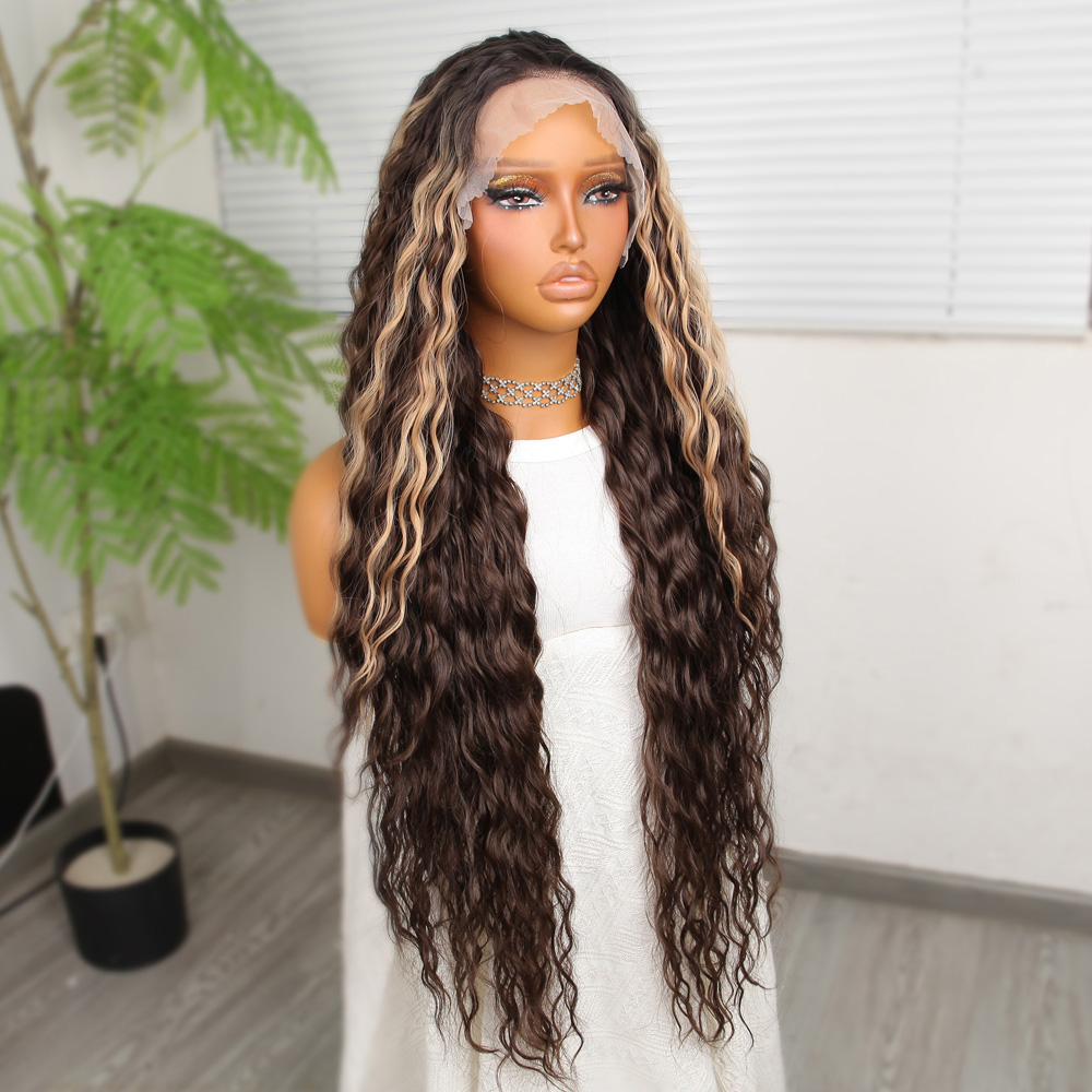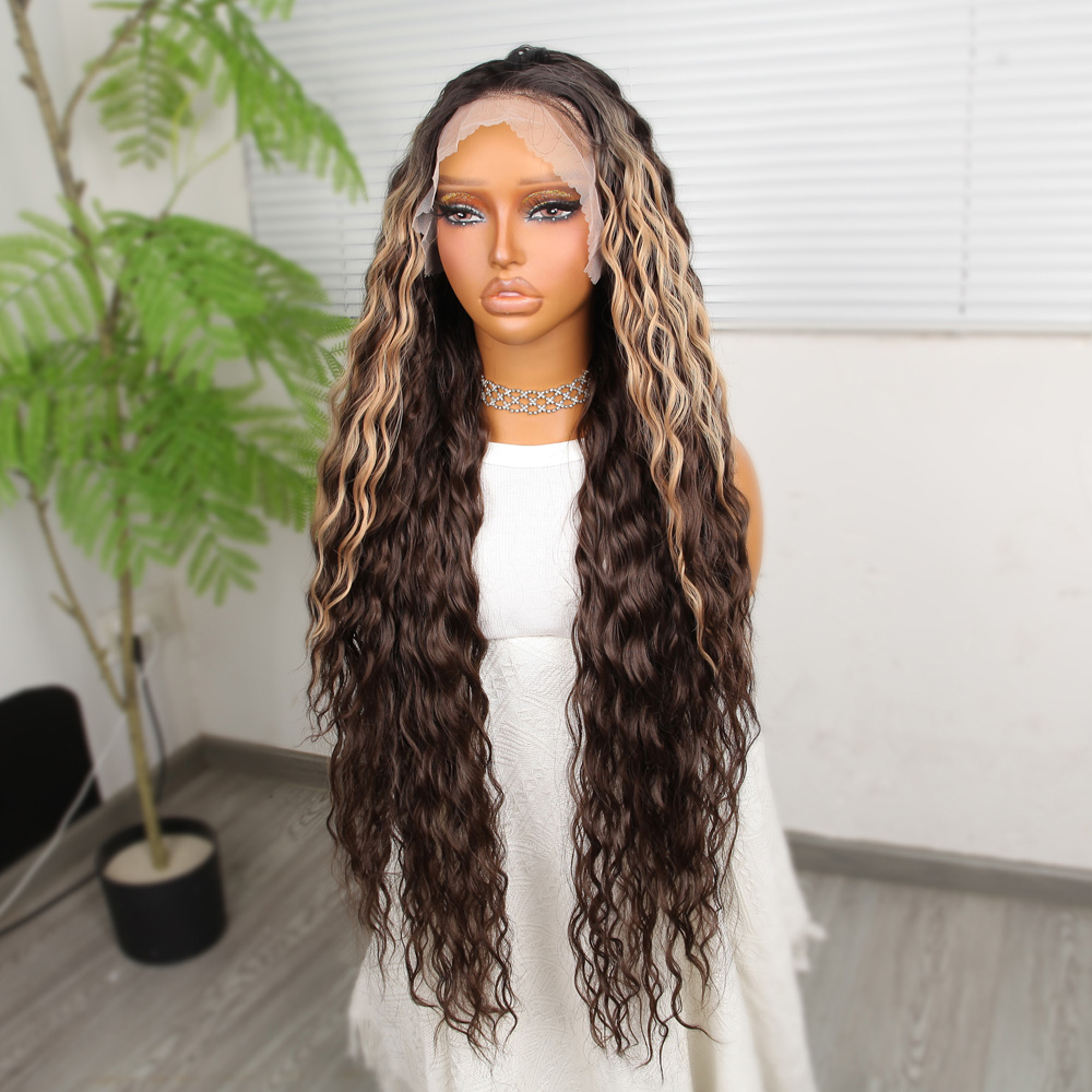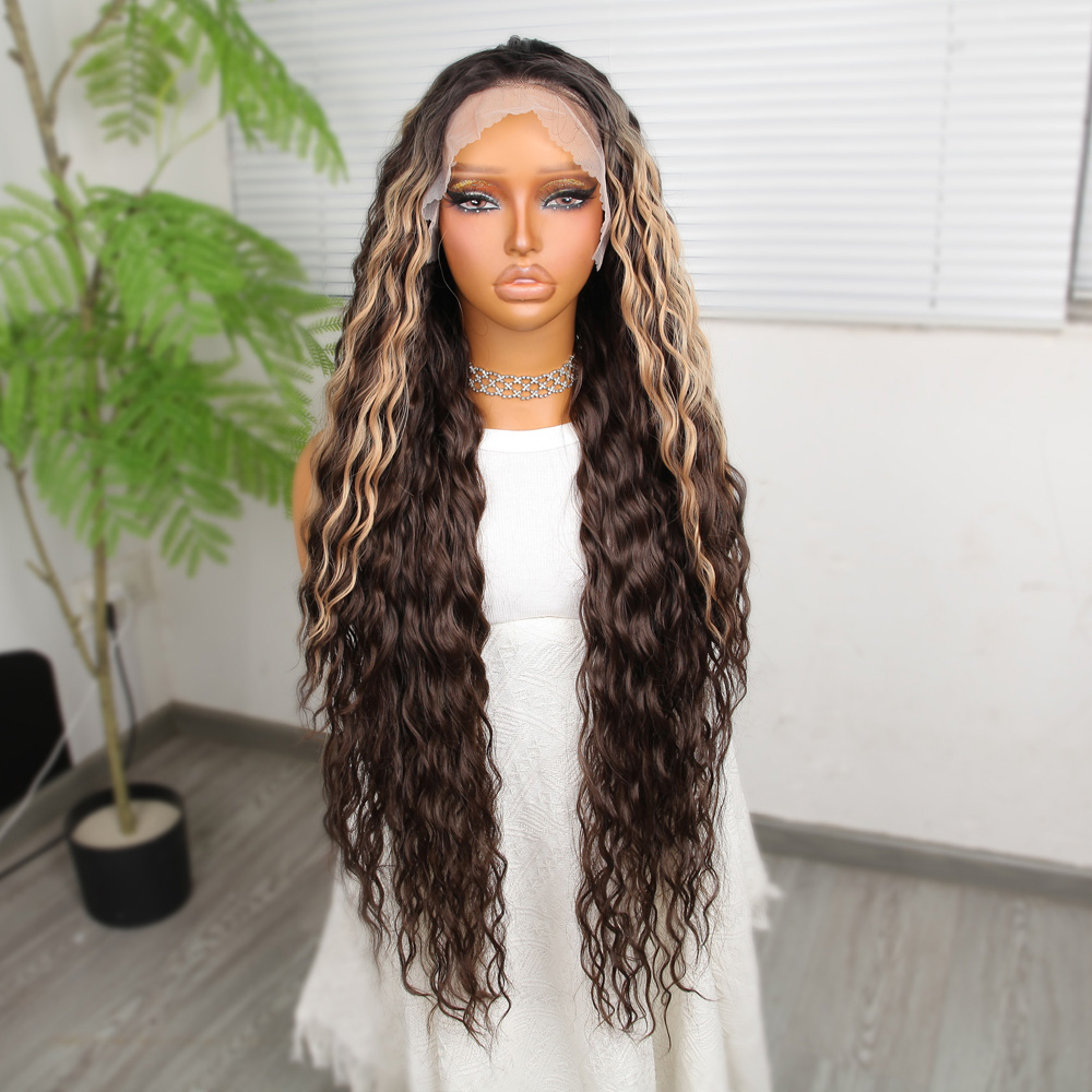 Perçemli Uzun Su Dalgası Fiber Sentetik Peruk- Ombre ve Röfleli