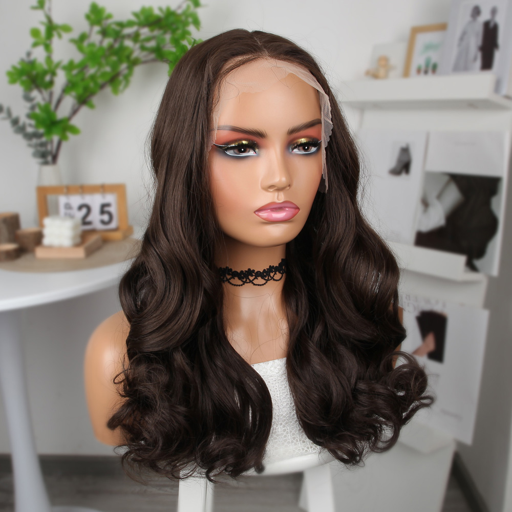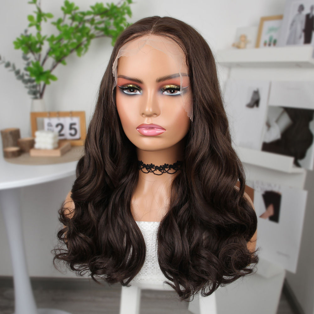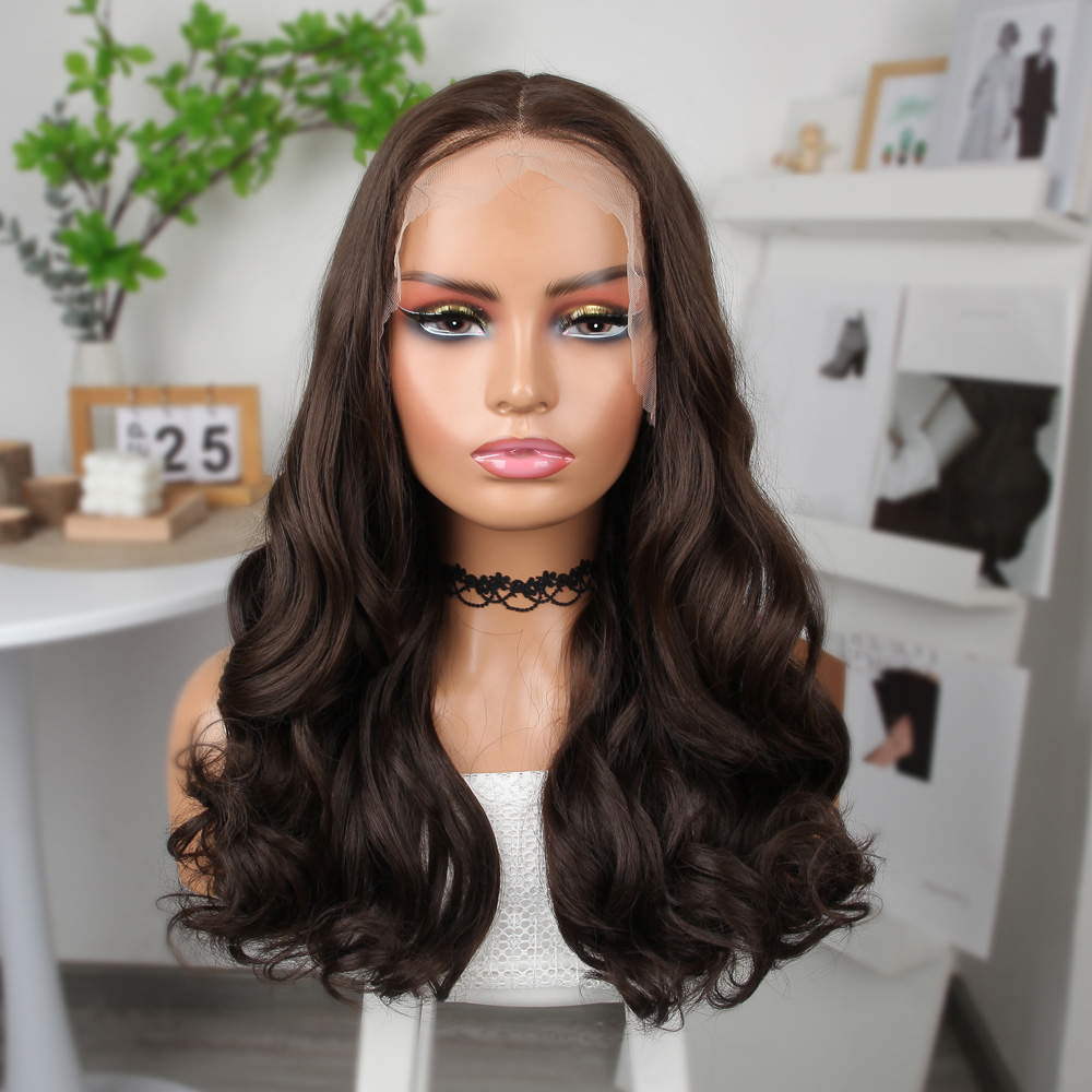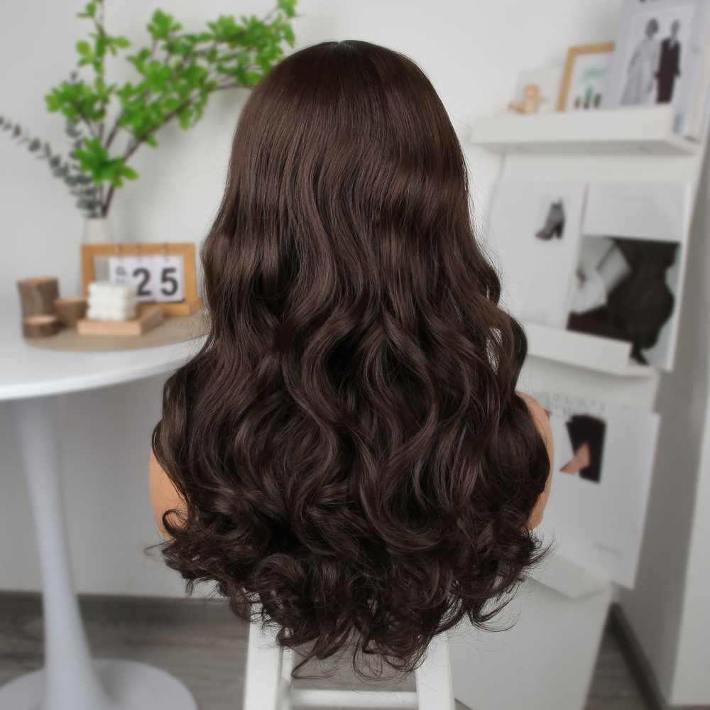 Koyu Kumral Ekstra Uzun Fiber Sentetik Dalgalı Tül Peruk