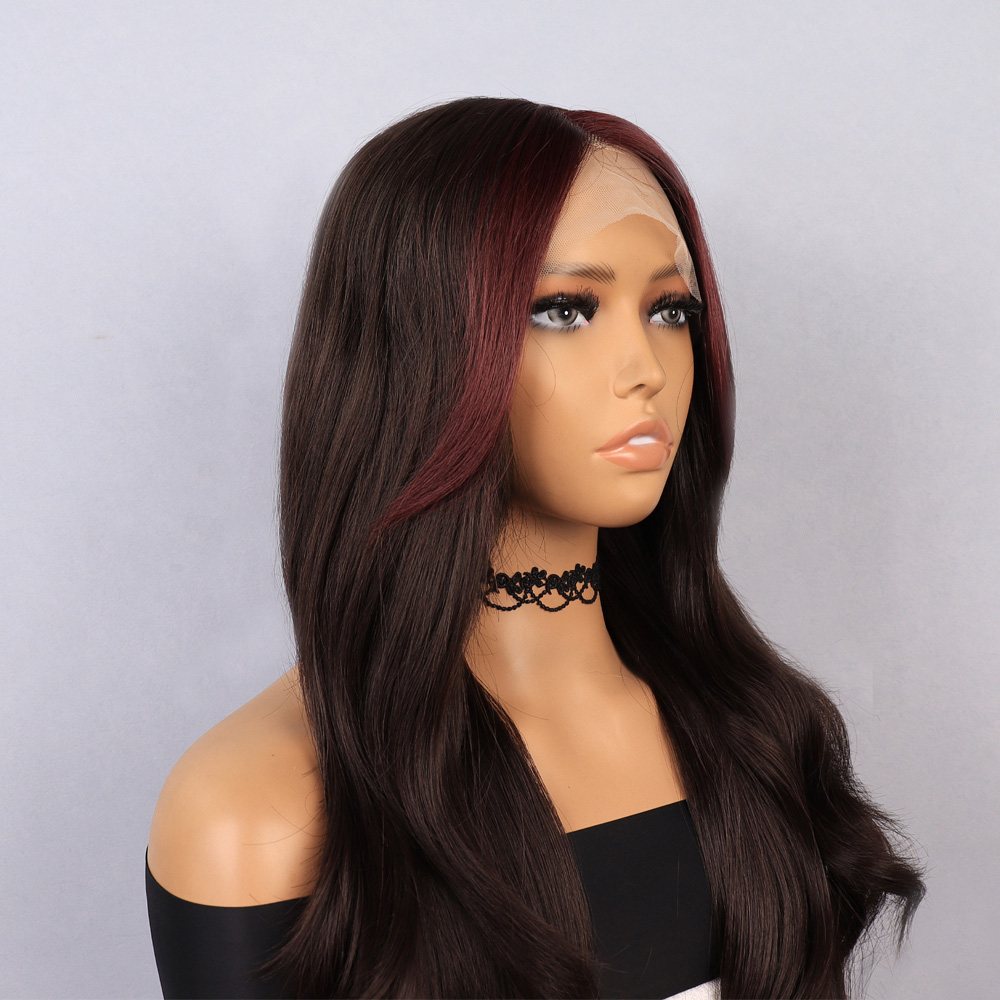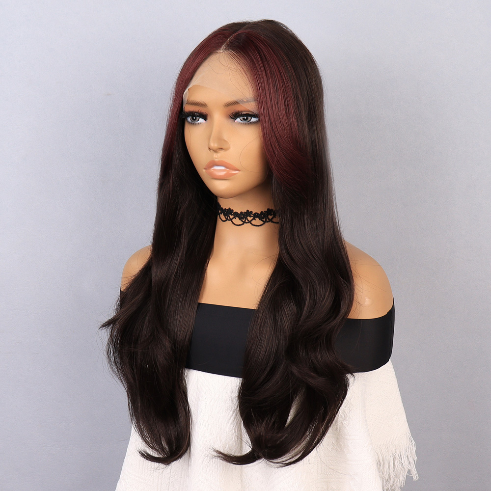 Perçemli Uzun Su Dalgası Fiber Sentetik Peruk- Ombre ve Röfleli