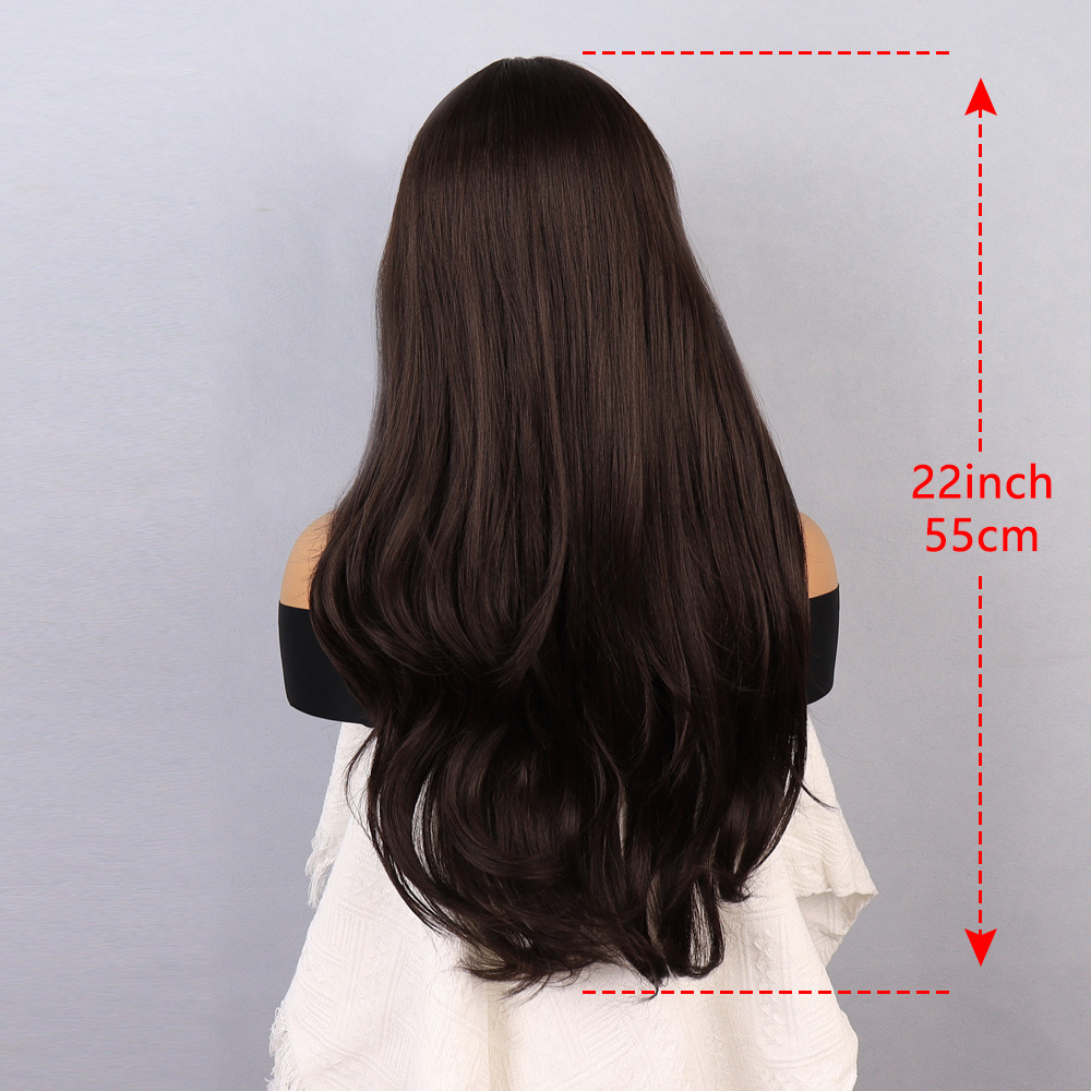 Koyu Kumral Ekstra Uzun Fiber Sentetik Dalgalı Tül Peruk
