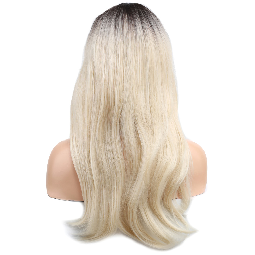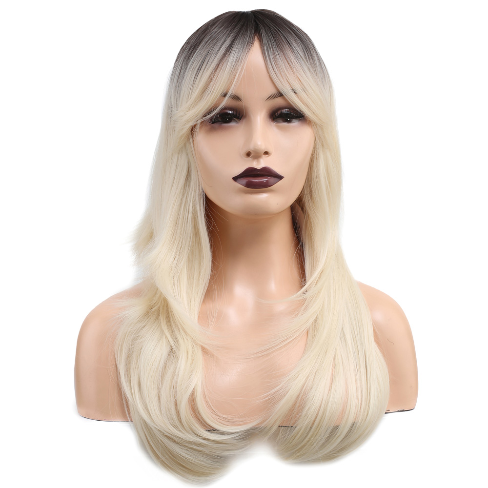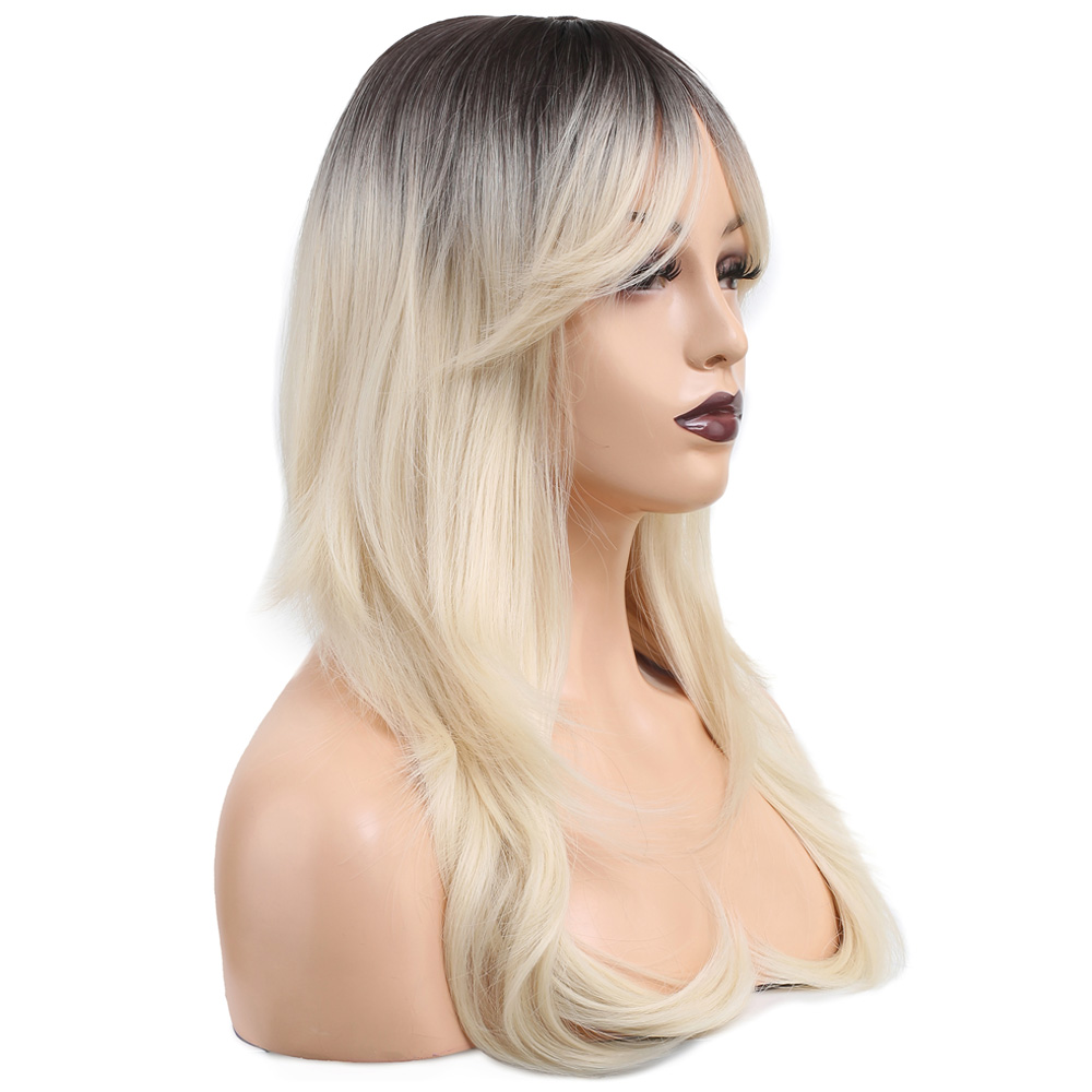 Katlı Kesim Perçemli Düz Fiber Sentetik Orta Boy Peruk - Kahve / Platin Ombreli