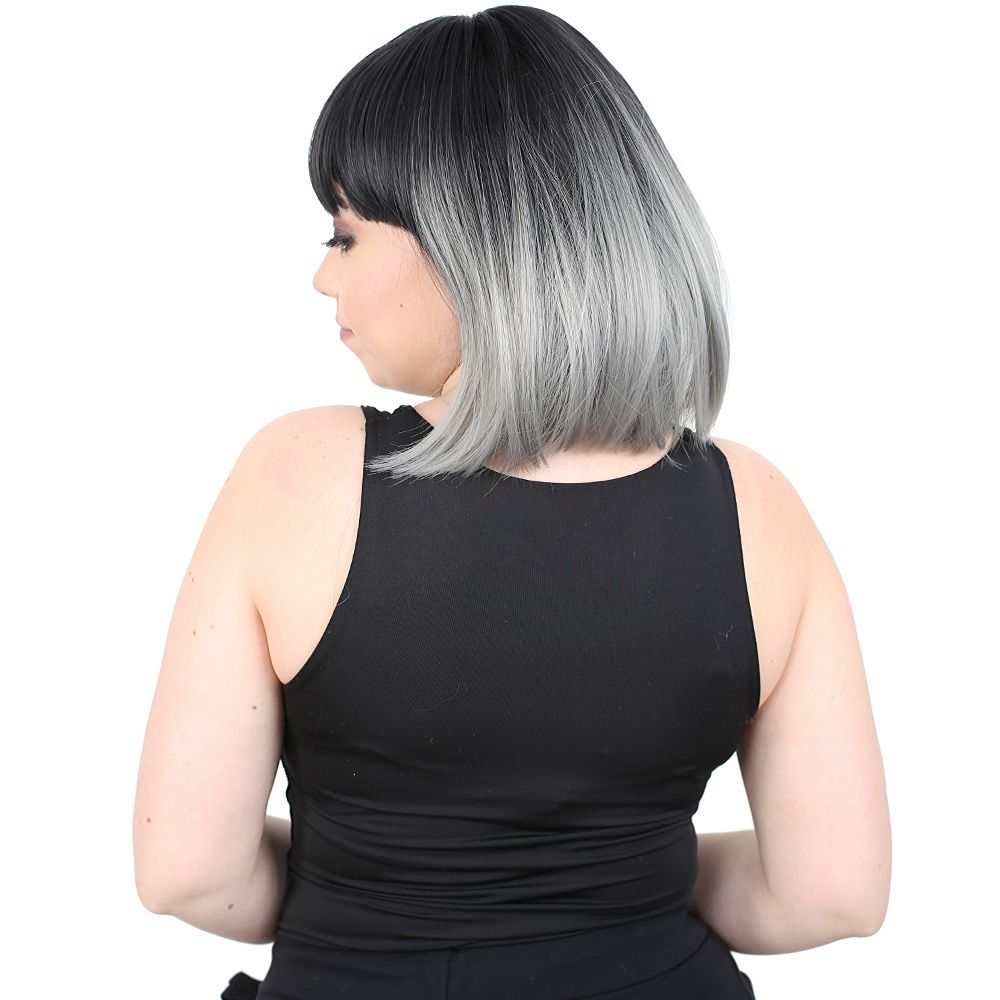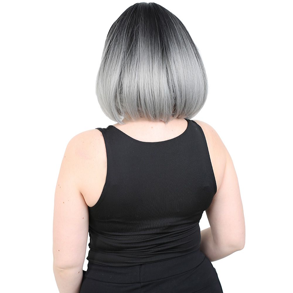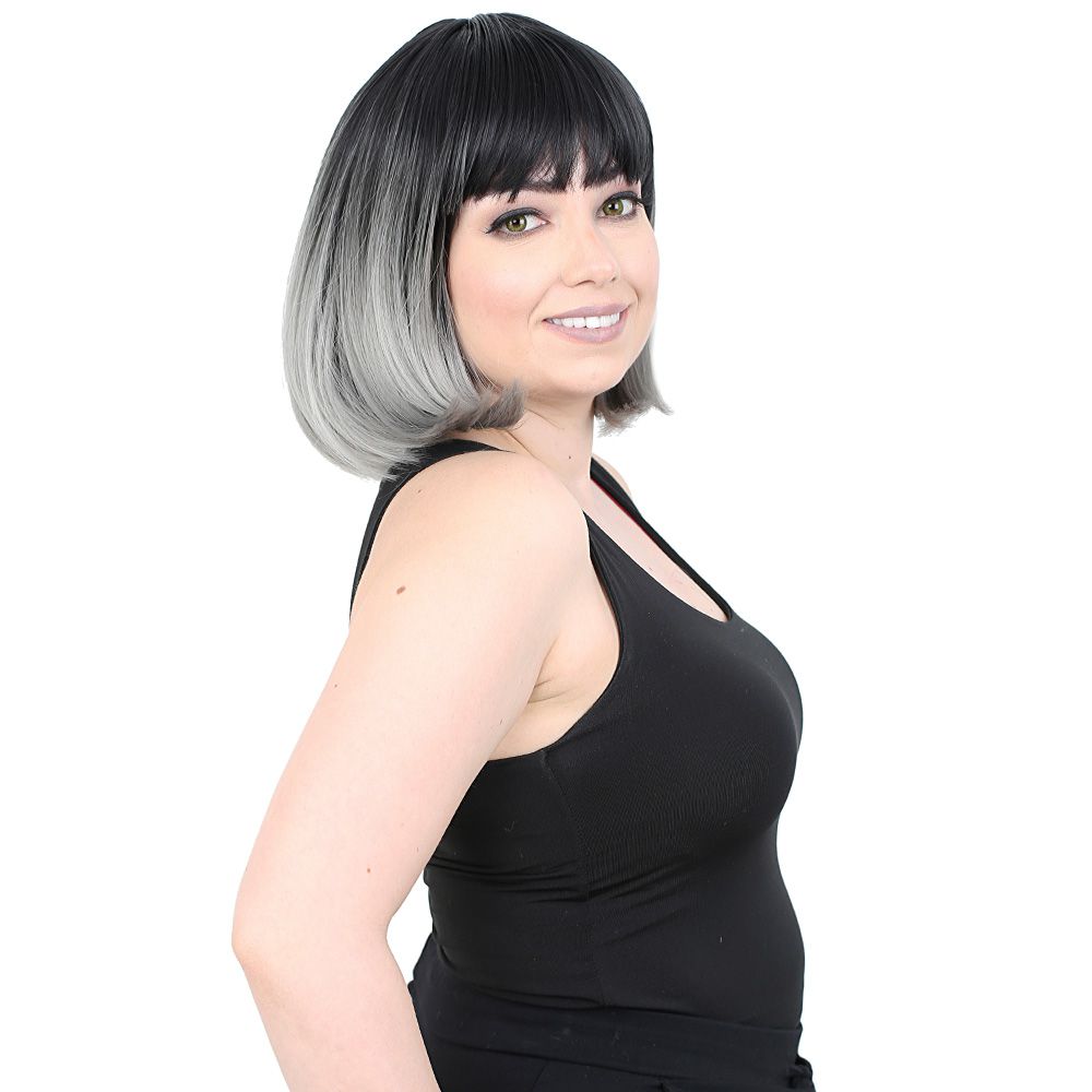 Kısa Küt Perçemli Fiber Sentetik Peruk - Siyah / Gri Ombreli