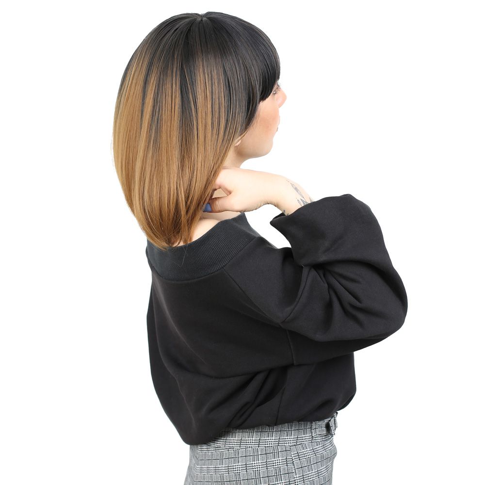 Kısa Küt Perçemli Fiber Sentetik Peruk - Siyah / Karamel Ombreli