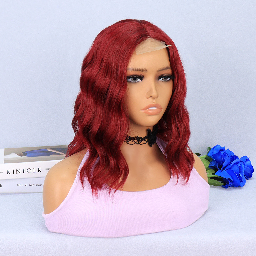 Kızıl Kahve Fiber Sentetik Geniş Dalgalı Tül Peruk