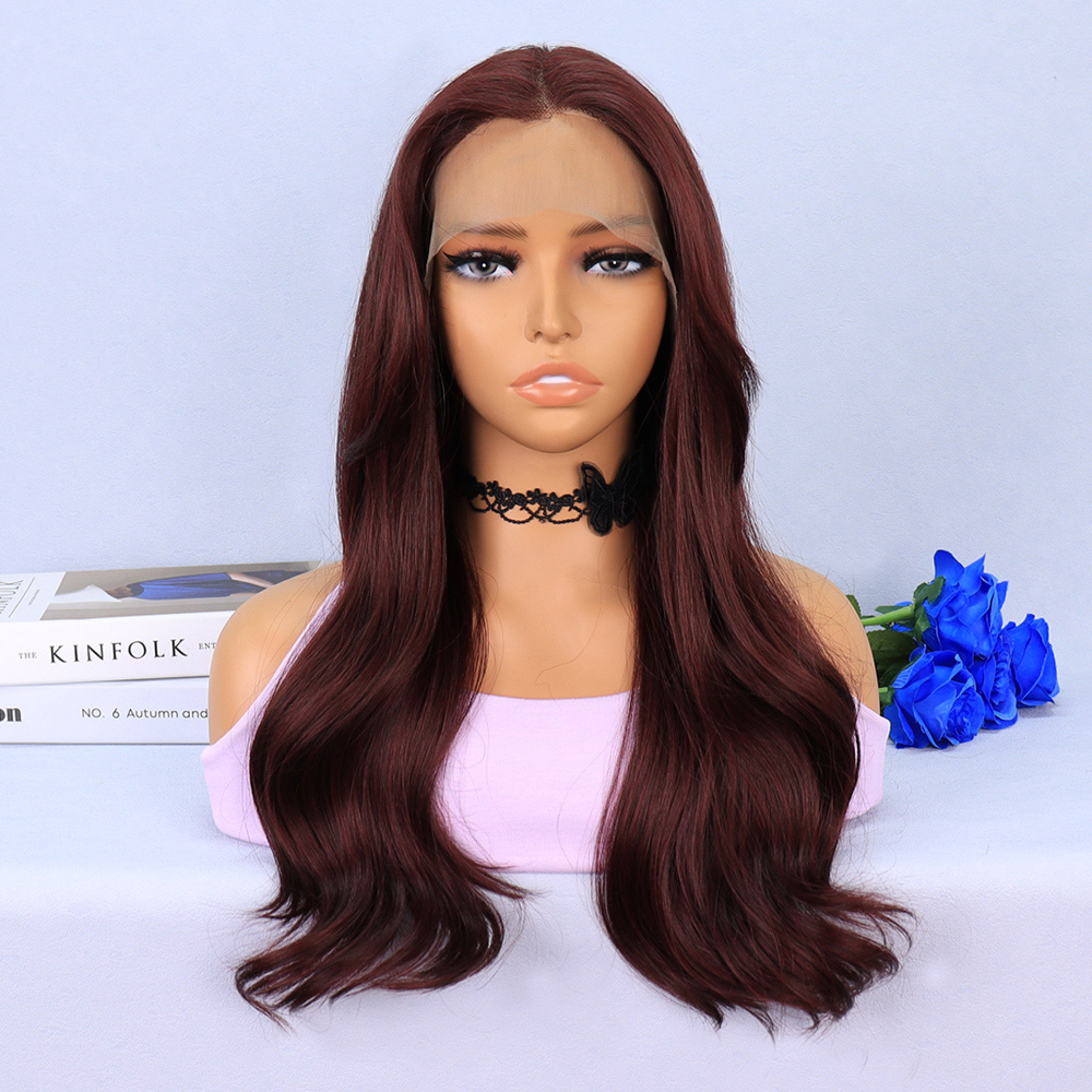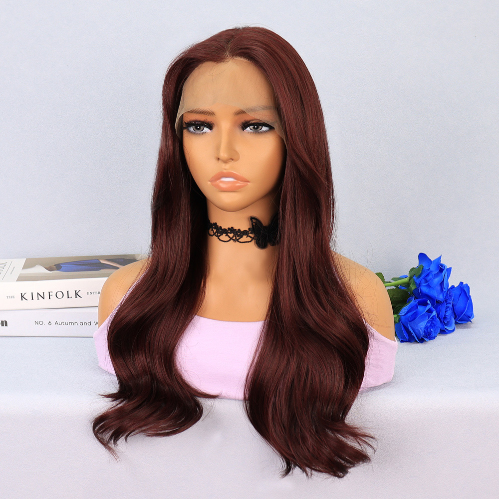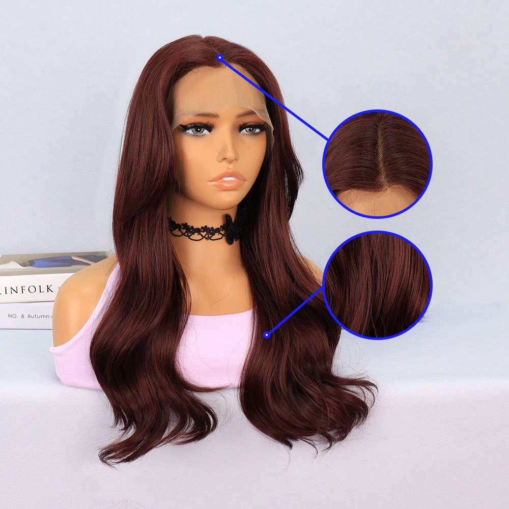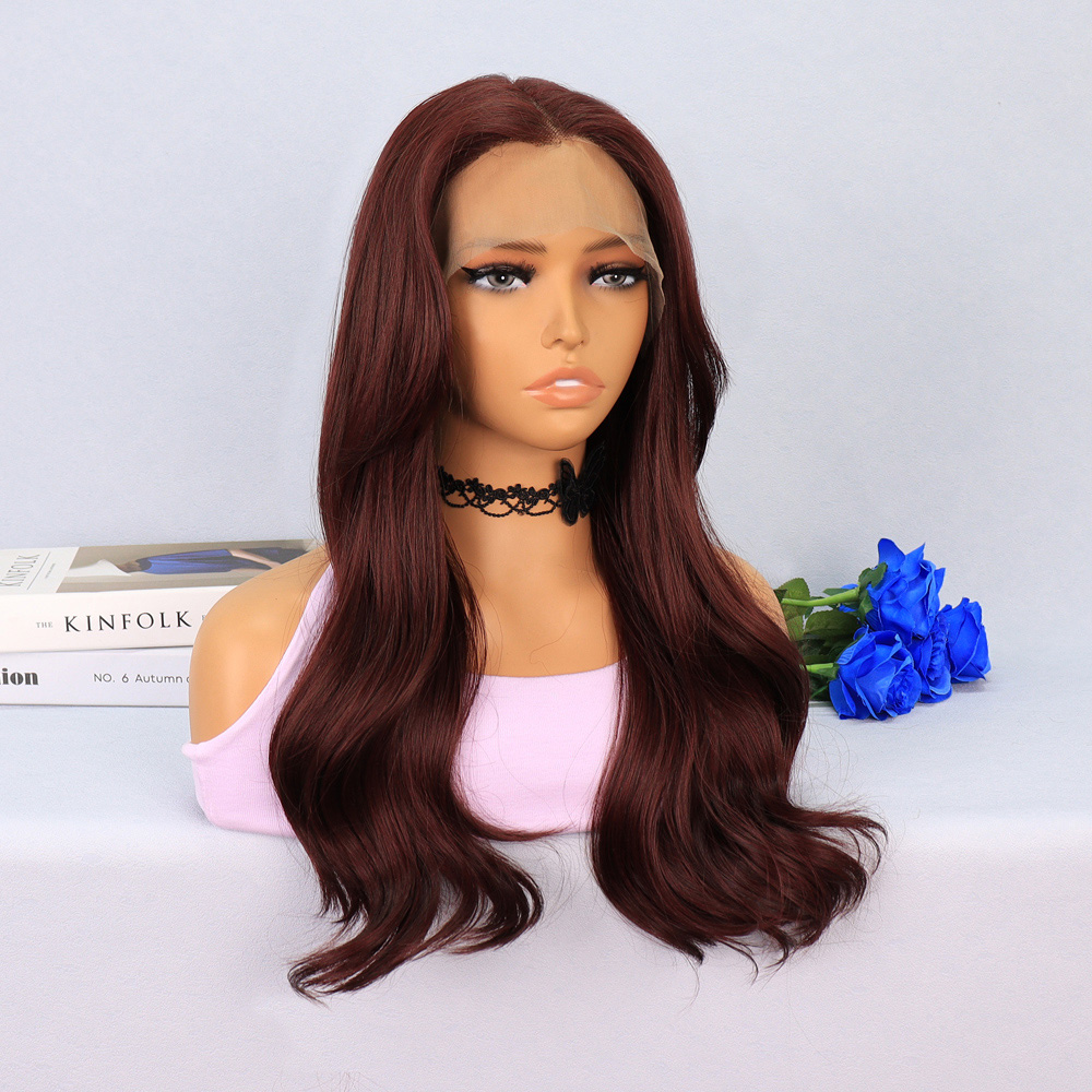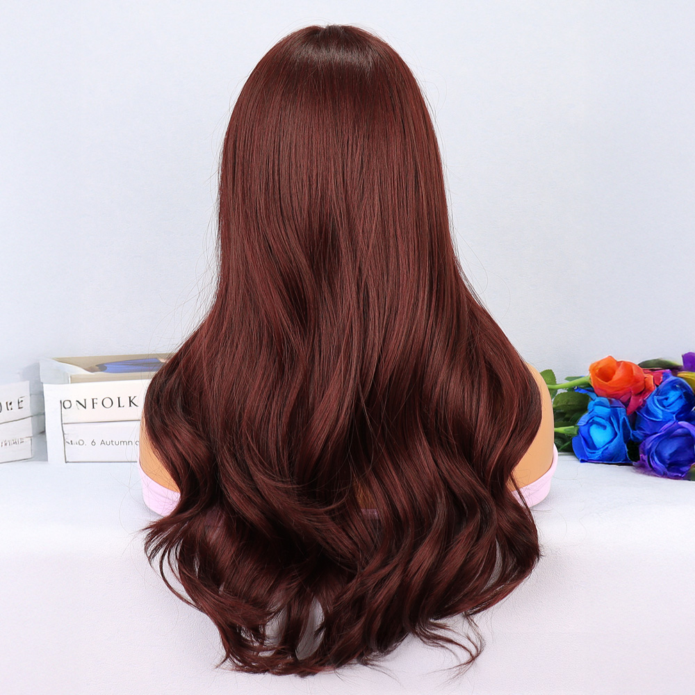 Kızıl Kahve Fiber Sentetik Geniş Dalgalı Tül Peruk