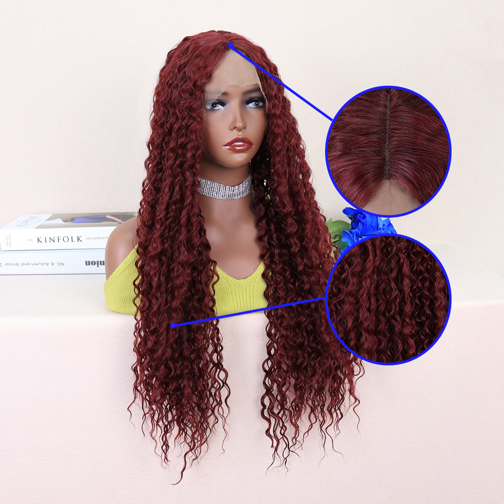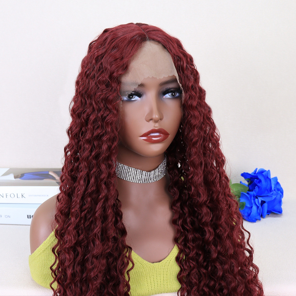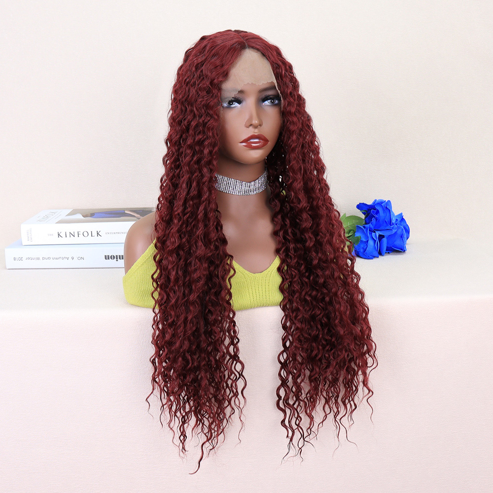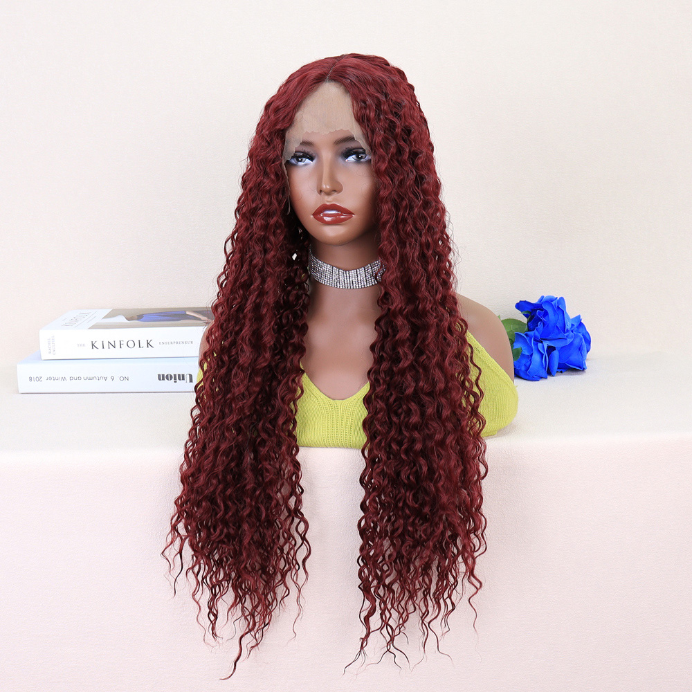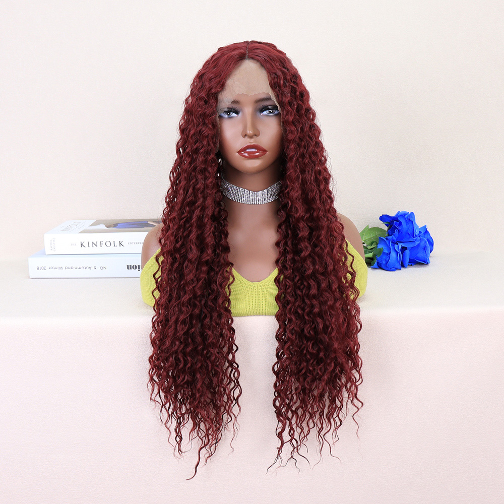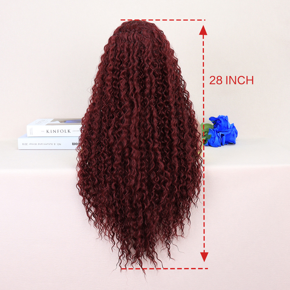 Kızıl Kahve Uzun Kıvırcık Dalgalı Fiber Sentetik Tül Peruk