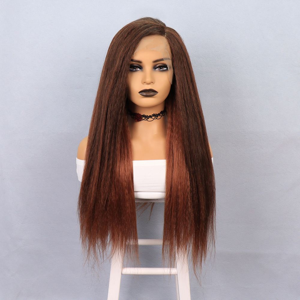 Afro Dalga Kumral Balköpüğü Ombre ve Röfleli Fiber Sentetik Tül Peruk